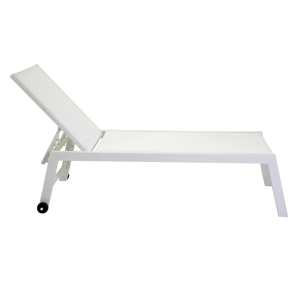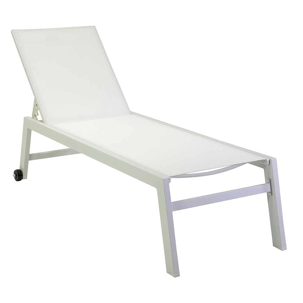 Mergulhe no conforto e estilo com a nossa espreguiçadeira de alumínio, ideal para relaxar ao sol ou desfrutar de uma tarde relaxante ao ar livre. Esta espreguiçadeira apresenta um design elegante e minimalista, com uma estrutura leve e robusta , facilitando a sua deslocação graças às práticas rodas incorporadas.