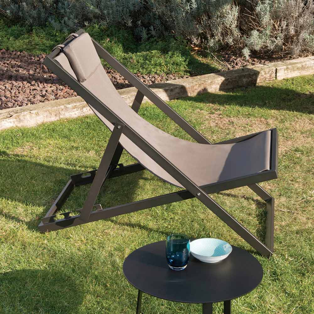 Espreguiçadeira exterior com estrutura de alumínio revestida a pó epóxi e assento de 2 peças emtextilne.