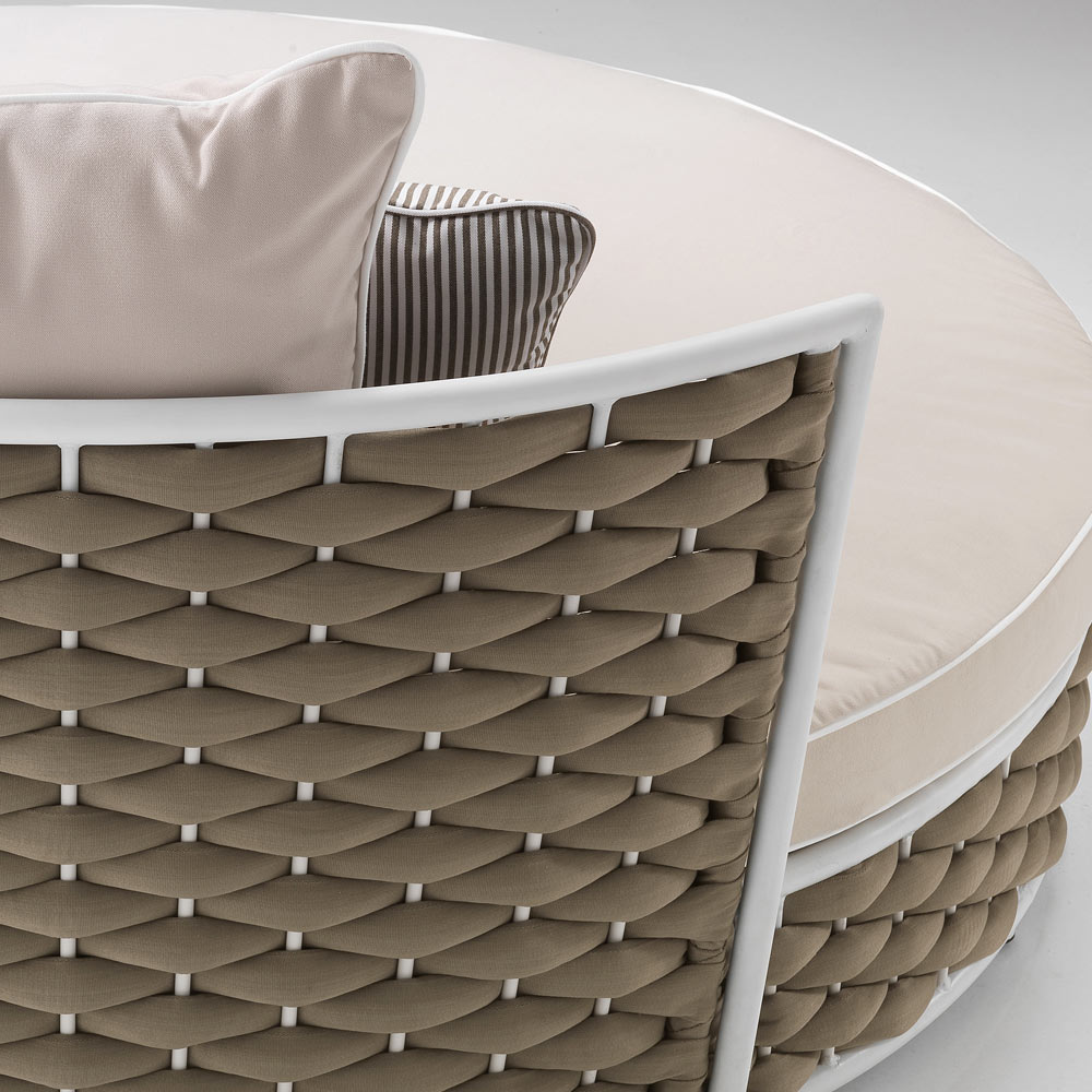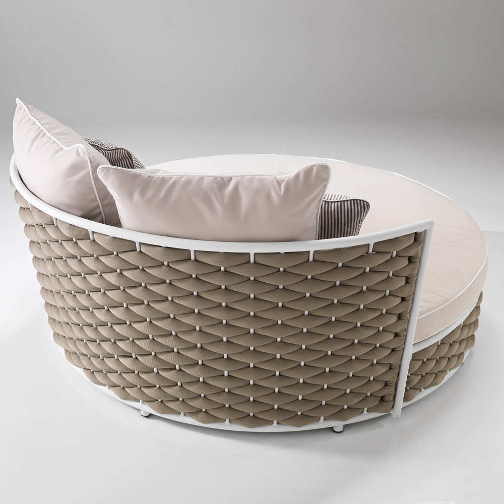 A estrutura deste sofá-cama é fácil de manusear e resistente, mas ao mesmo tempo mantém um design limpo. Seu estilo moderno confere-lhe um caráter forte, tornando-o perfeito para mobiliar espaços ao ar livre, tanto em ambientes privados quanto em contratos.