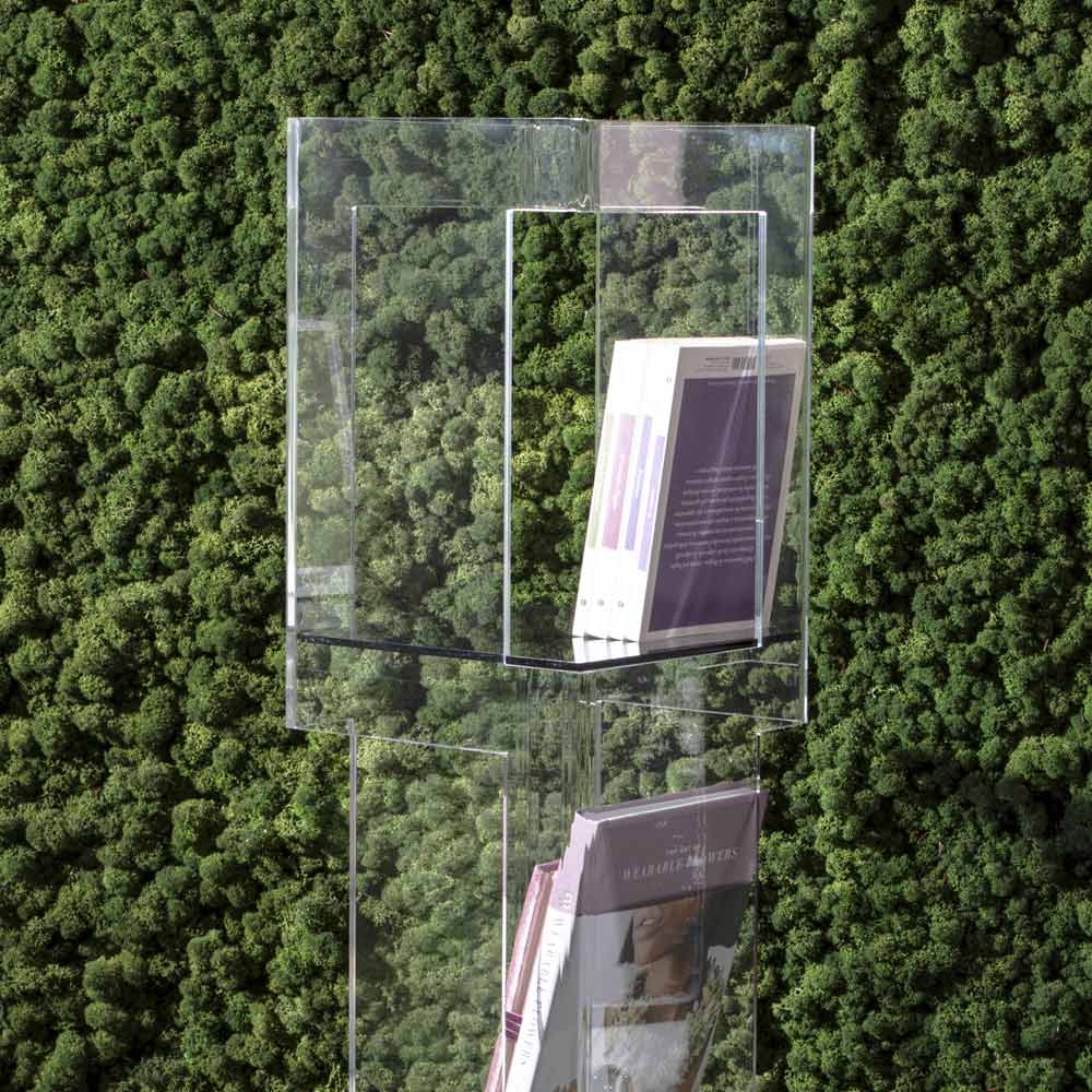Estante independente em cristal acrílico 2 acabamentos e 2 tamanhos made in Italy.