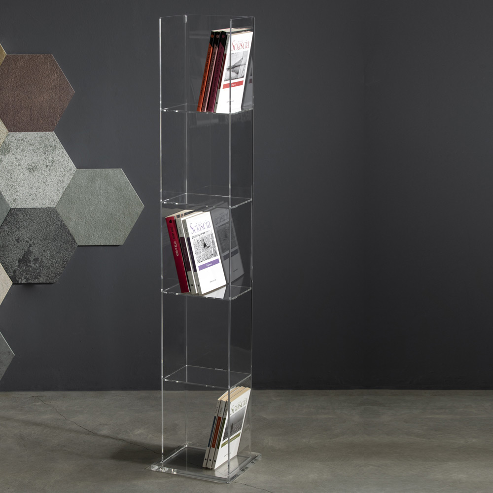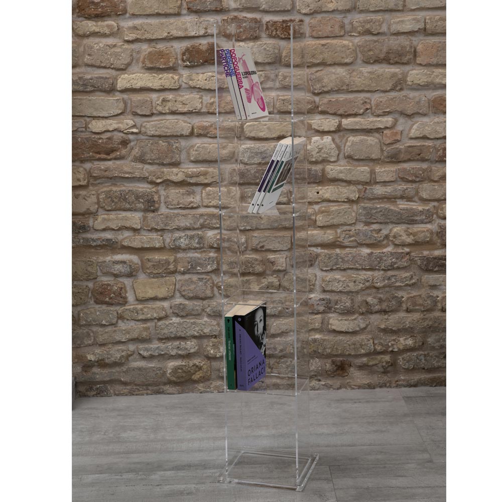 Estante independente em cristal acrílico transparente, design made in Italy.