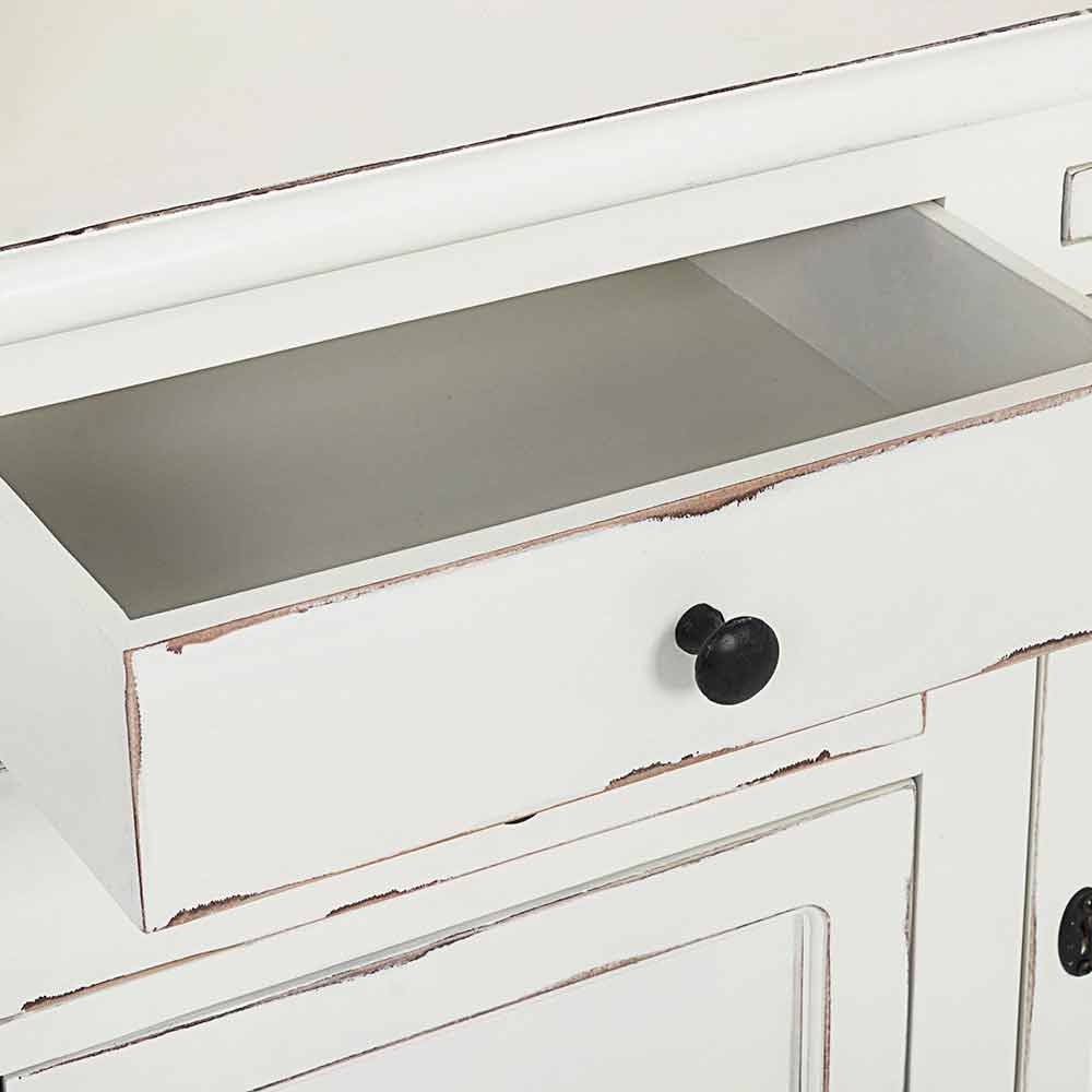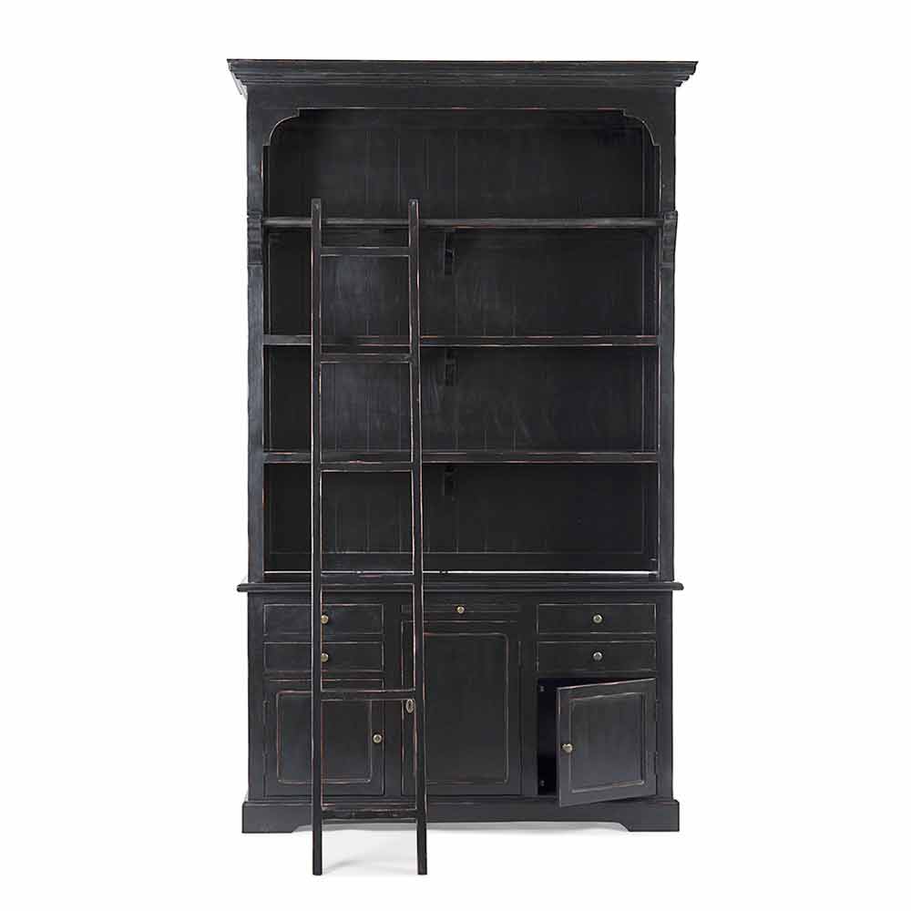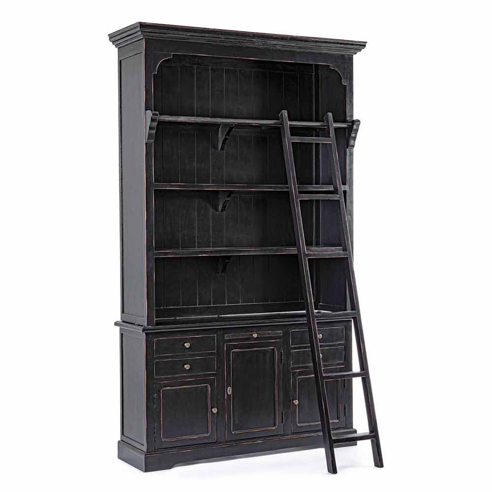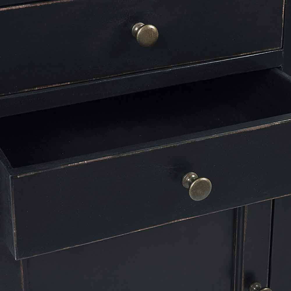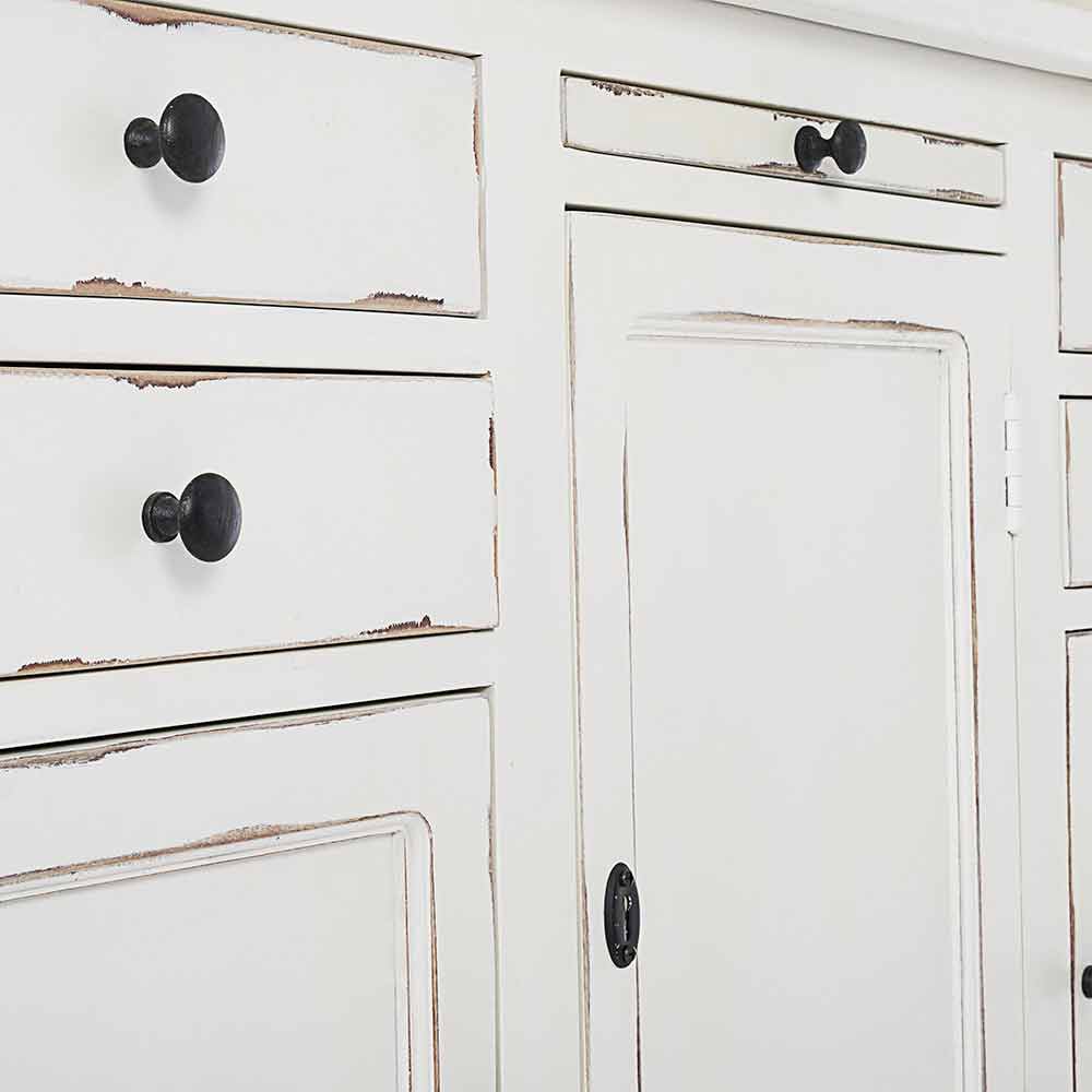 Estante de piso de estilo clássico em madeira de manga e MDF com puxadores em ferro fundido.