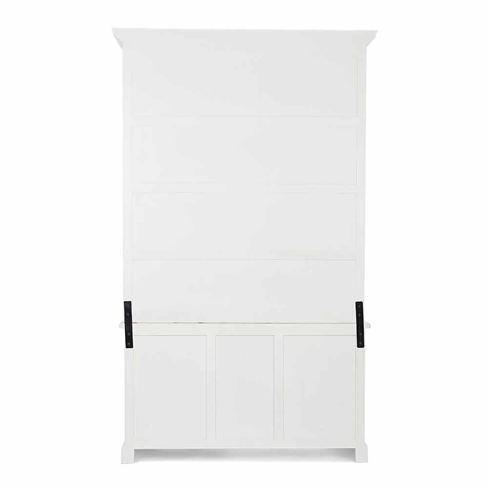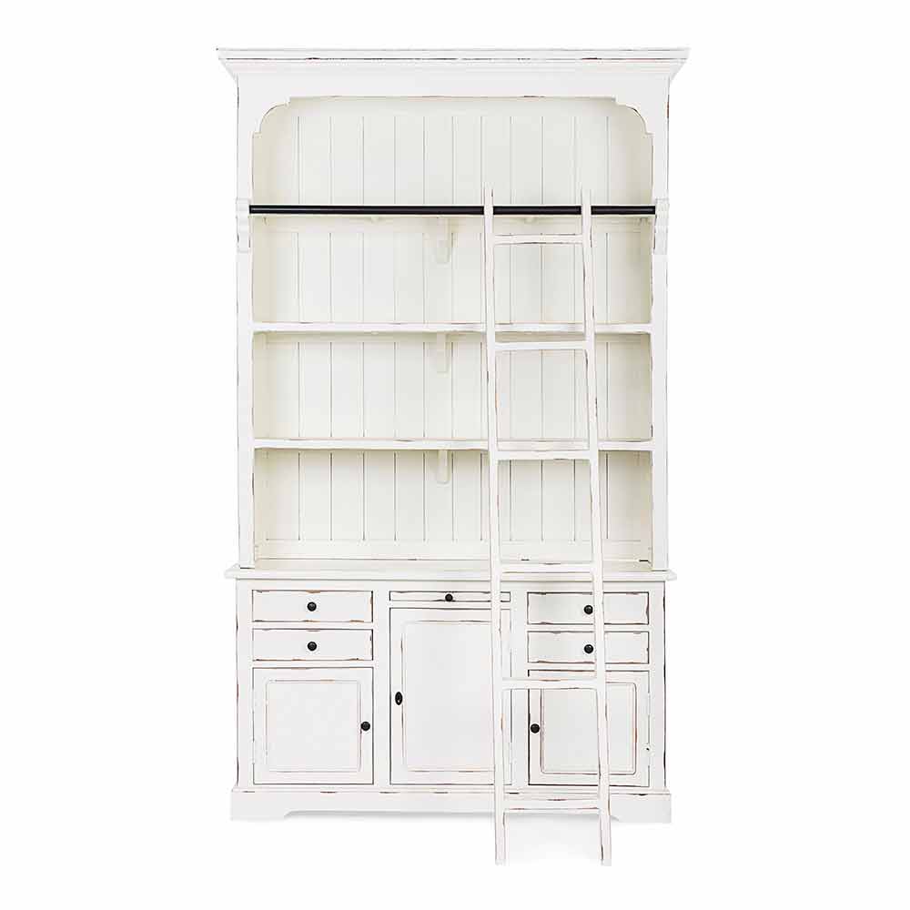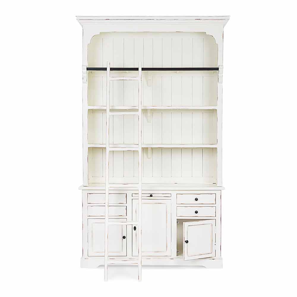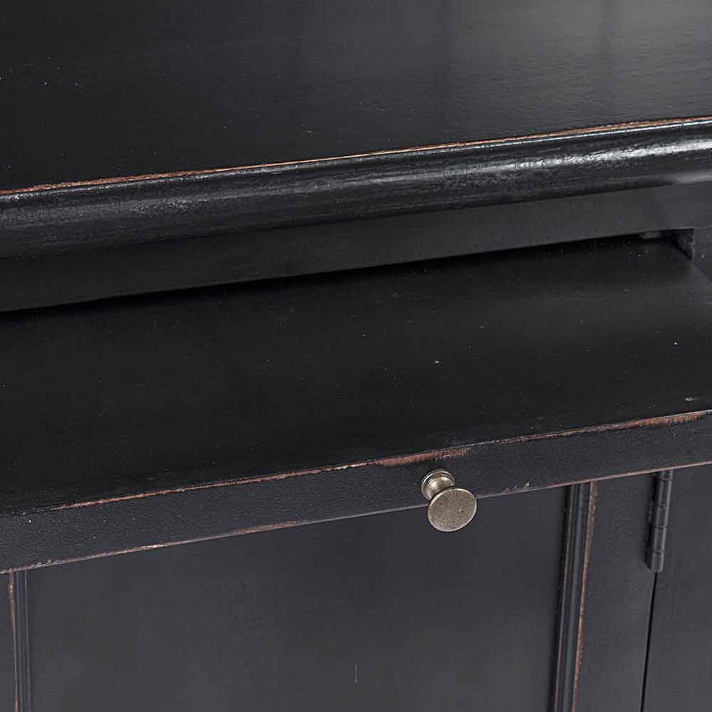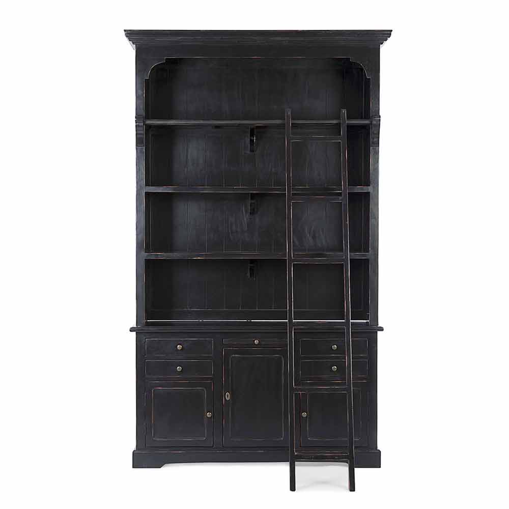 Estante de piso de estilo clássico em madeira de manga e MDF com puxadores em ferro fundido.