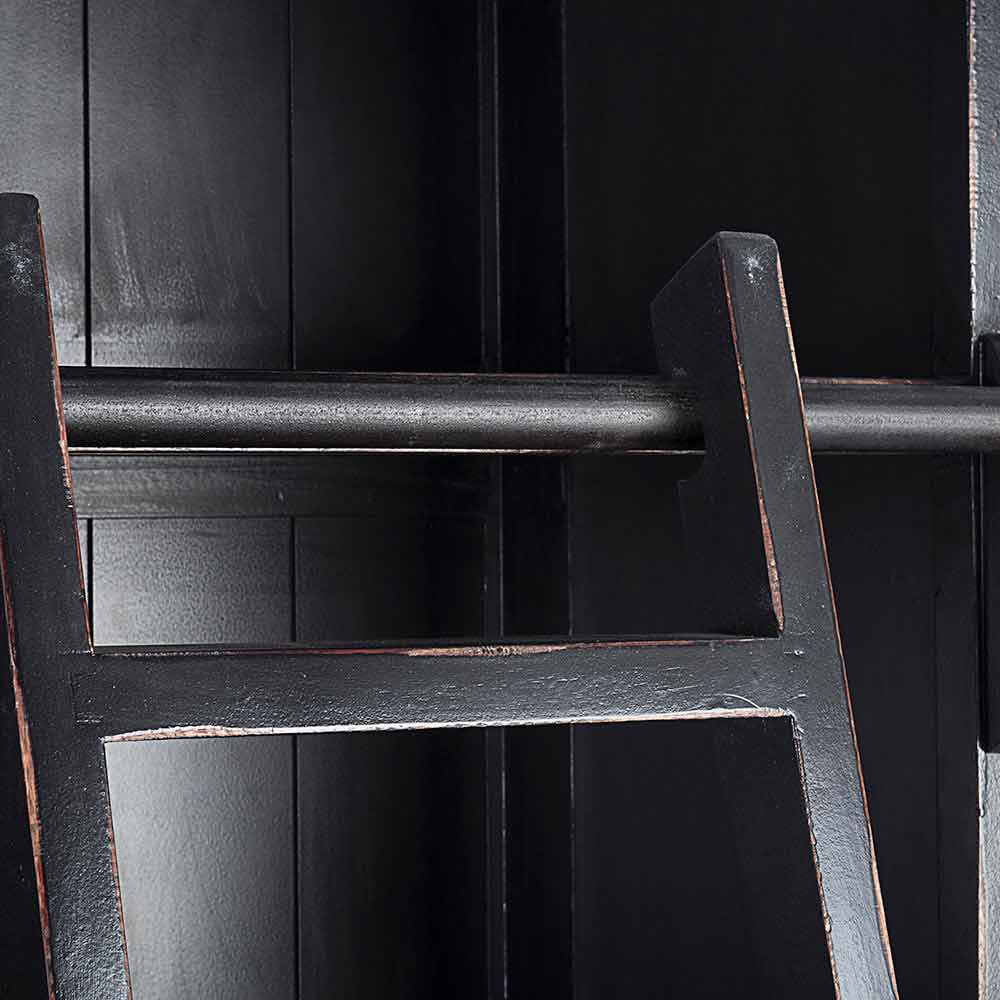 mdf . Escada decorativa em madeira manga. Acabamento decapado e envelhecido à base de nitrocelulose. Cabos em