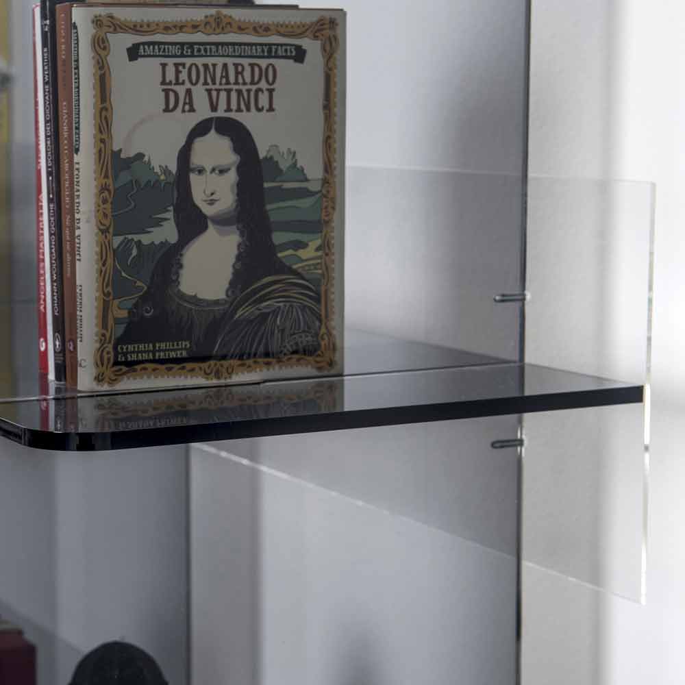 A estante Sfera4 é caracterizada por um design minimalista. Os livros parecem estar flutuando no vazio. É uma estante independente, mas também pode ser fixada na parede.