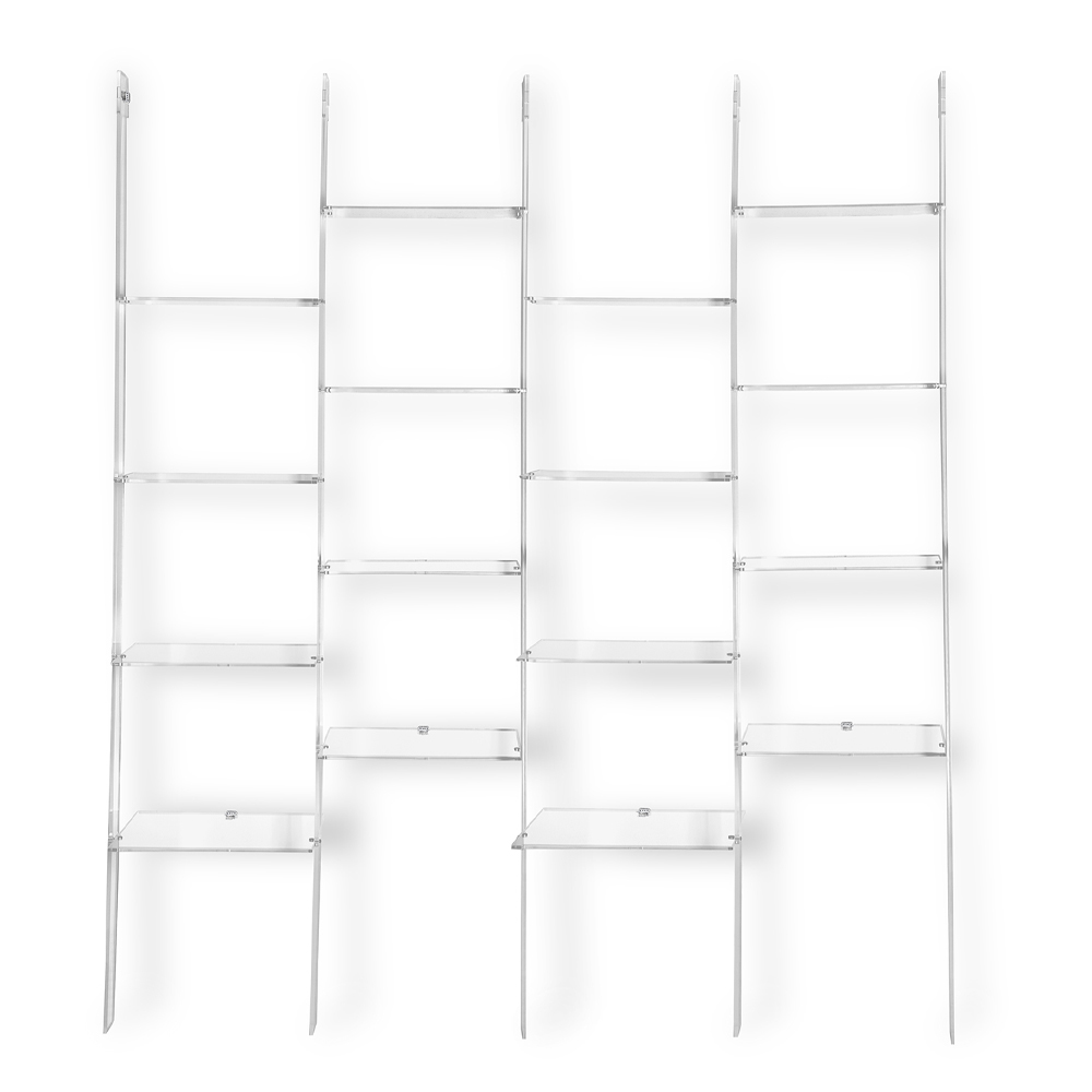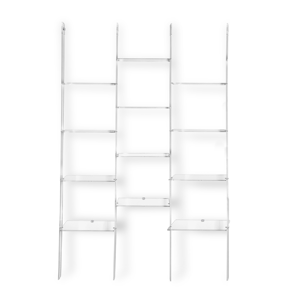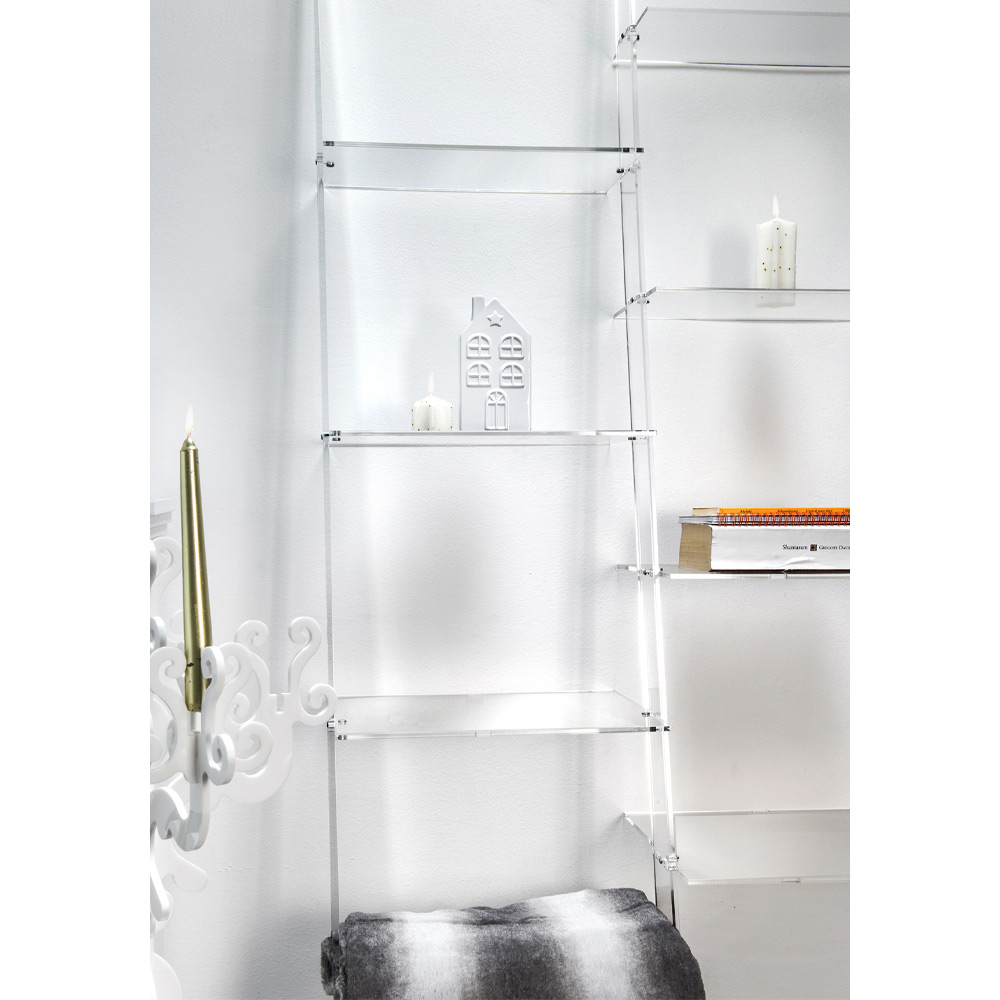 Estante de parede em forma de escada com até 4 elementos em plexiglass transparente fabricado na Itália.