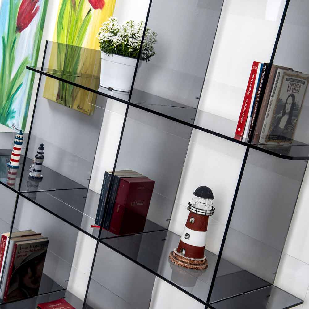 Estante de parede moderna Sfera3, acabamento fumé, L180 x H180 x P30 cm