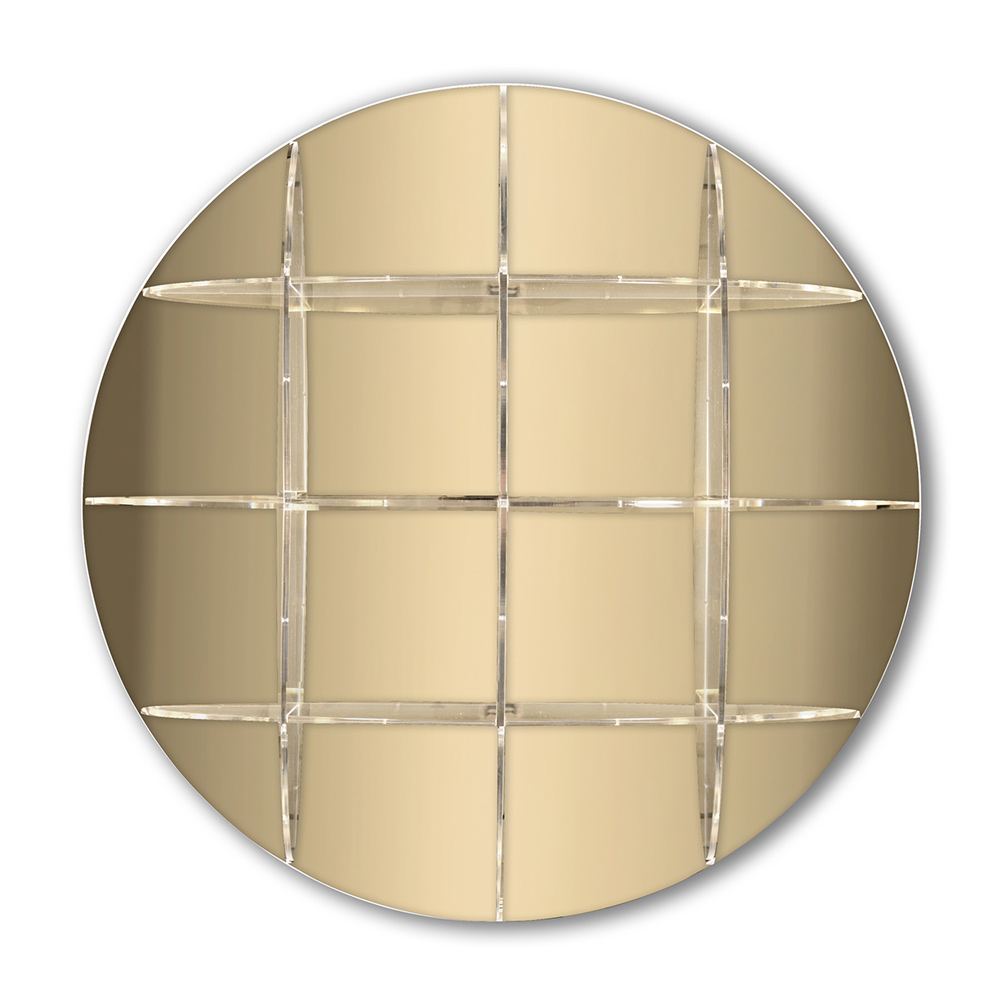 Estante de parede redonda em plexiglass dourado ou prateado Fabricado na Itália.