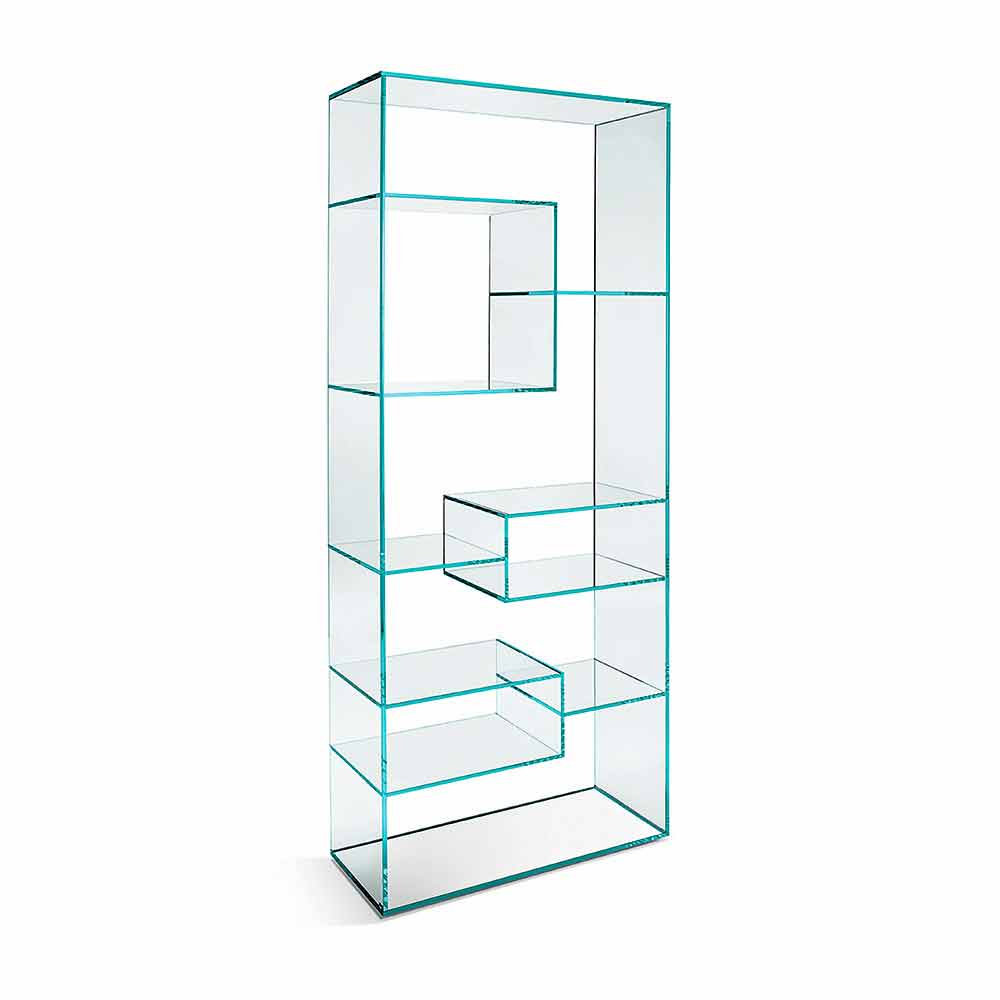 Esta estante expositora é caracterizada por seu design determinado e elegante inteiramente feito de vidro extra-claro.