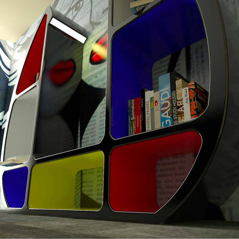 Shelley não é apenas uma simples estante, mas também pode se tornar um canto de relaxamento onde você pode ler confortavelmente um livro e isso também graças à carcaça de uma luz LED que aponta diretamente para o assento.