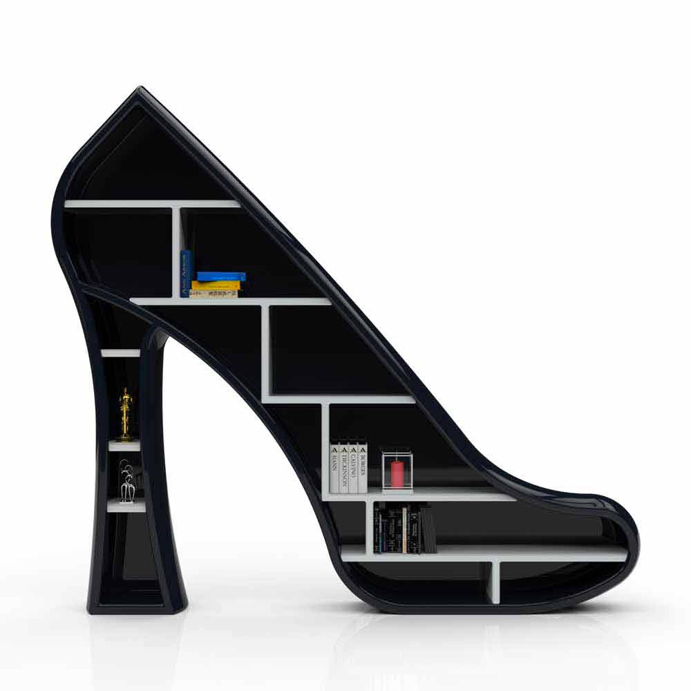 Objeto de design ou capricho? Bookcase Lady nada mais é do que a transposição para o desenho do objeto feminino por excelência: o sapato com salto.