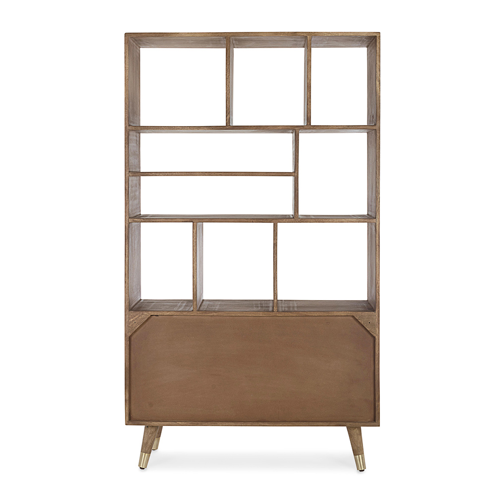 Esta estante independente apresenta uma estrutura de madeira de manga com fundo de MDF.