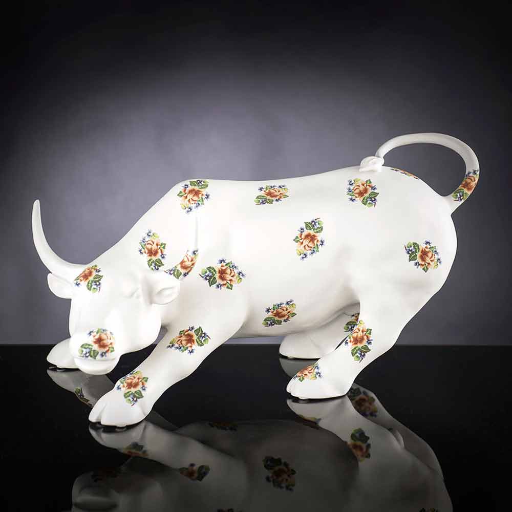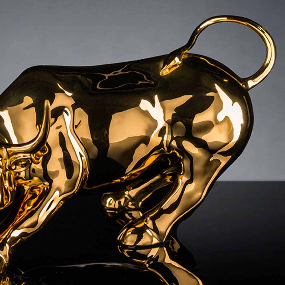 Estátua em forma de touro de cerâmica colorida feita à mão na Itália, de alta qualidade.