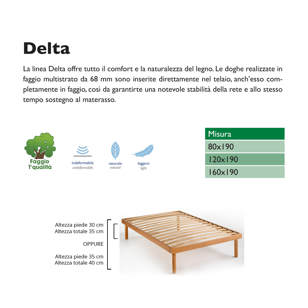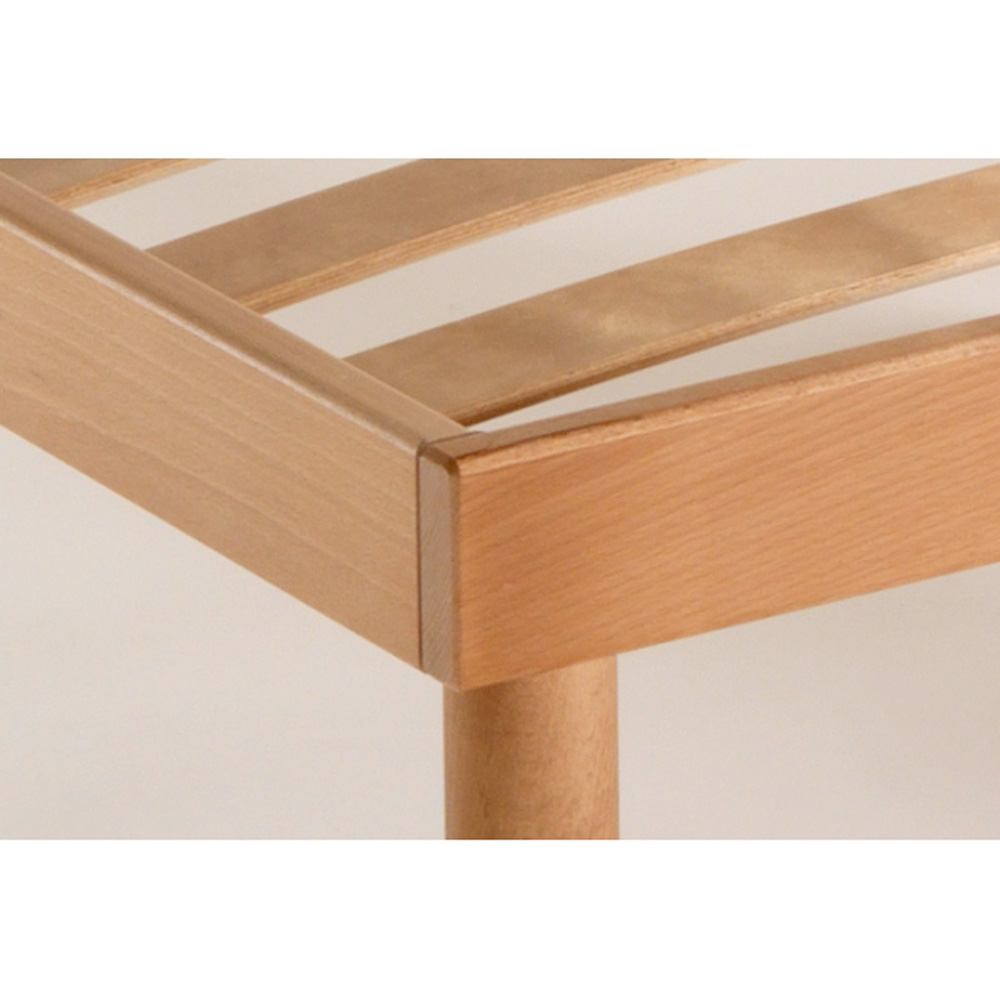 faia multicamadas de 68 mm são inseridas diretamente na estrutura, também totalmente em faia, de forma a garantir uma estabilidade considerável da base e ao mesmo tempo apoiar o colchão.