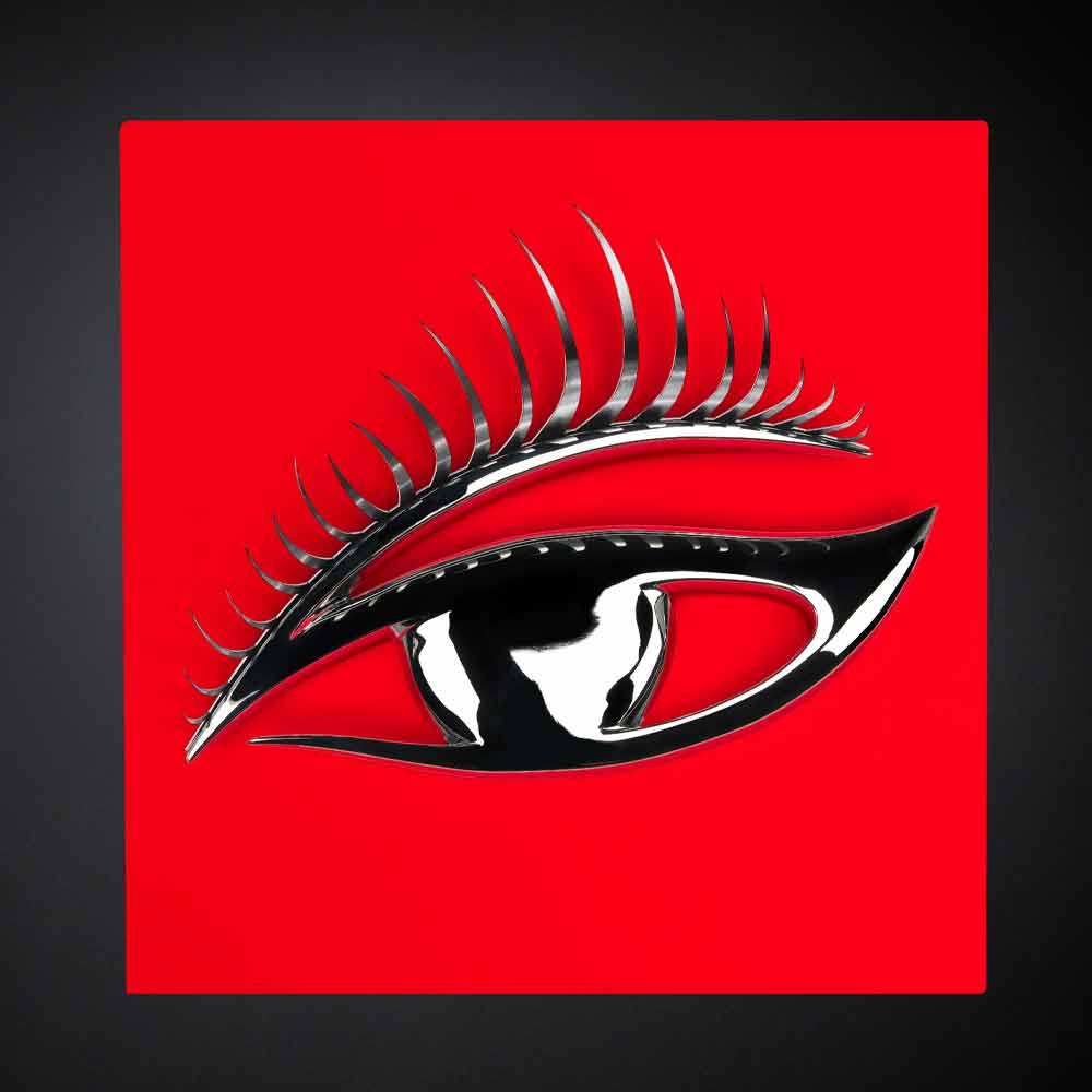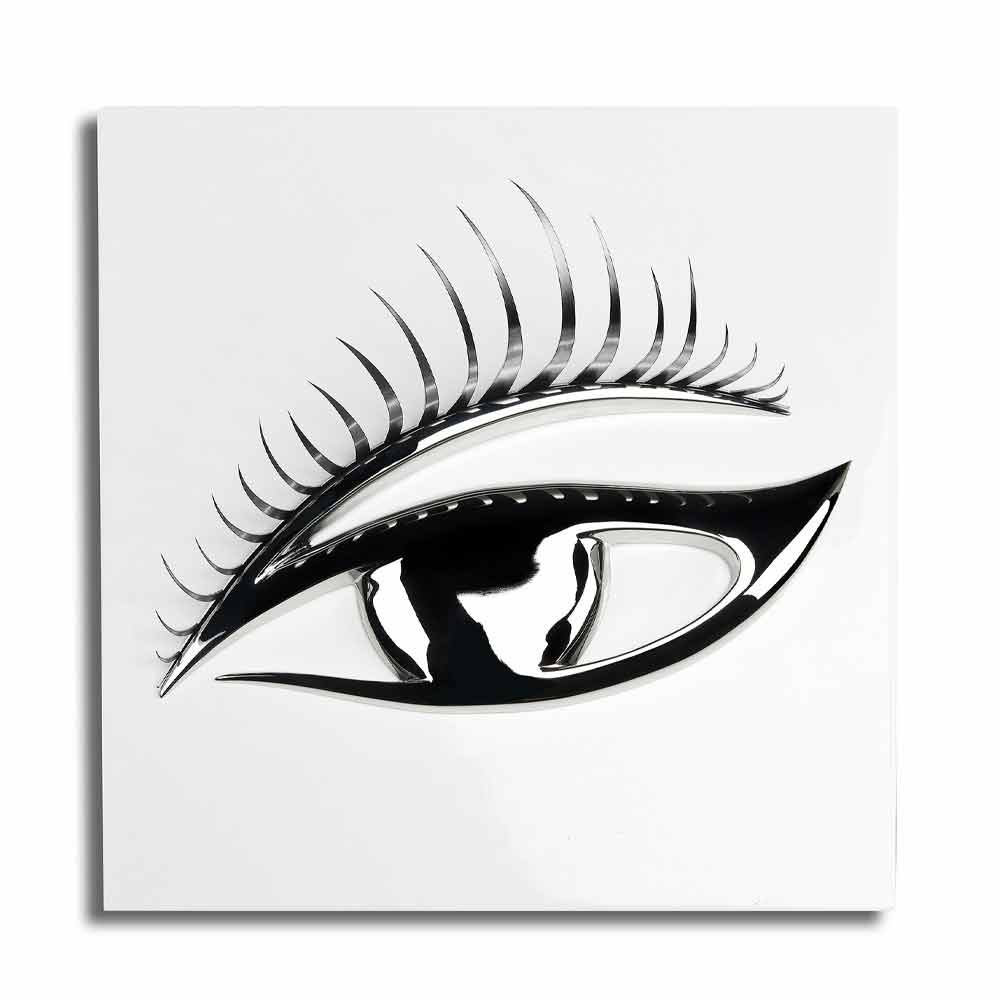 Painel decorativo de parede feito à mão na Itália em madeira lacada com cílios de aço e olho de resina com acabamento cromado. A elegância do design encontra o requinte dos materiais para dar vida a um complemento original que pode enriquecer as paredes da sua casa de forma exclusiva e com