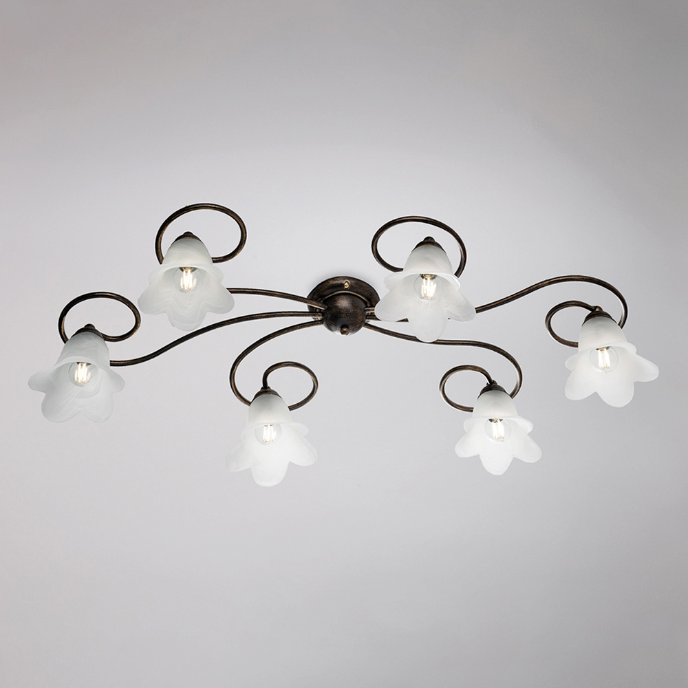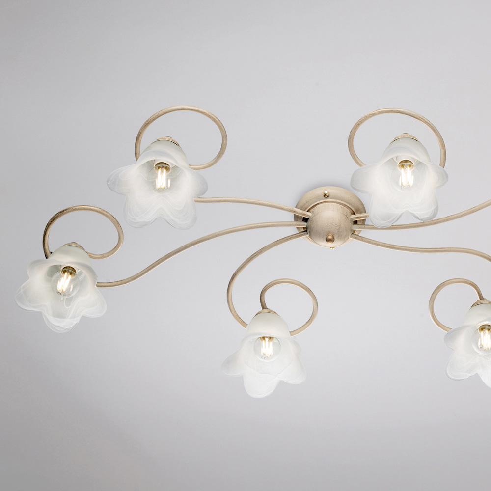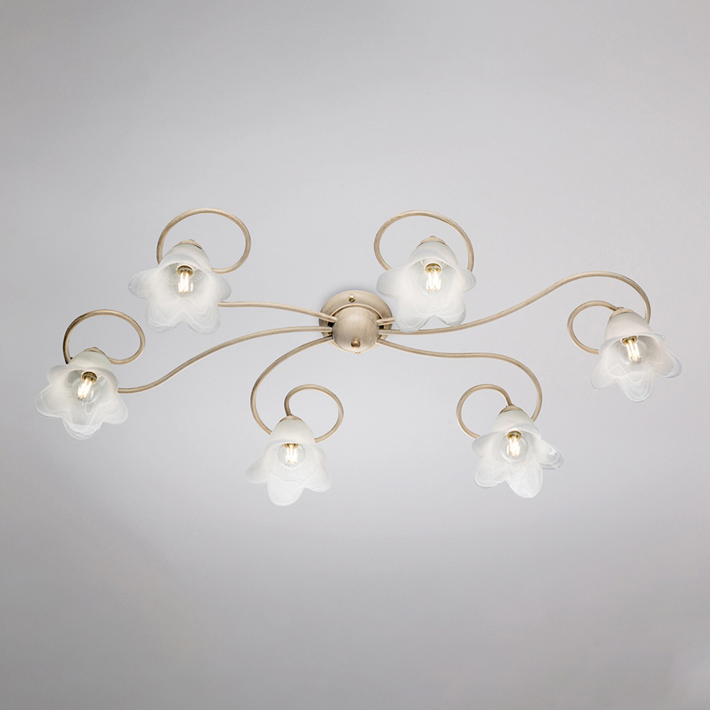 Os materiais cuidadosamente selecionados — ferro e vidro — conferem um efeito elegante e uma agradável emissão de luz. Fabricada inteiramente na Itália, esta luminária de teto é o resultado de um trabalho artesanal meticuloso que aprimora tanto a estética quanto a funcionalidade.