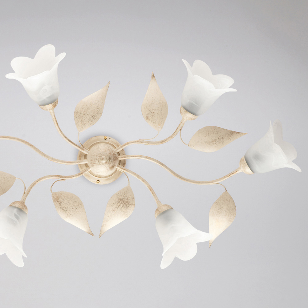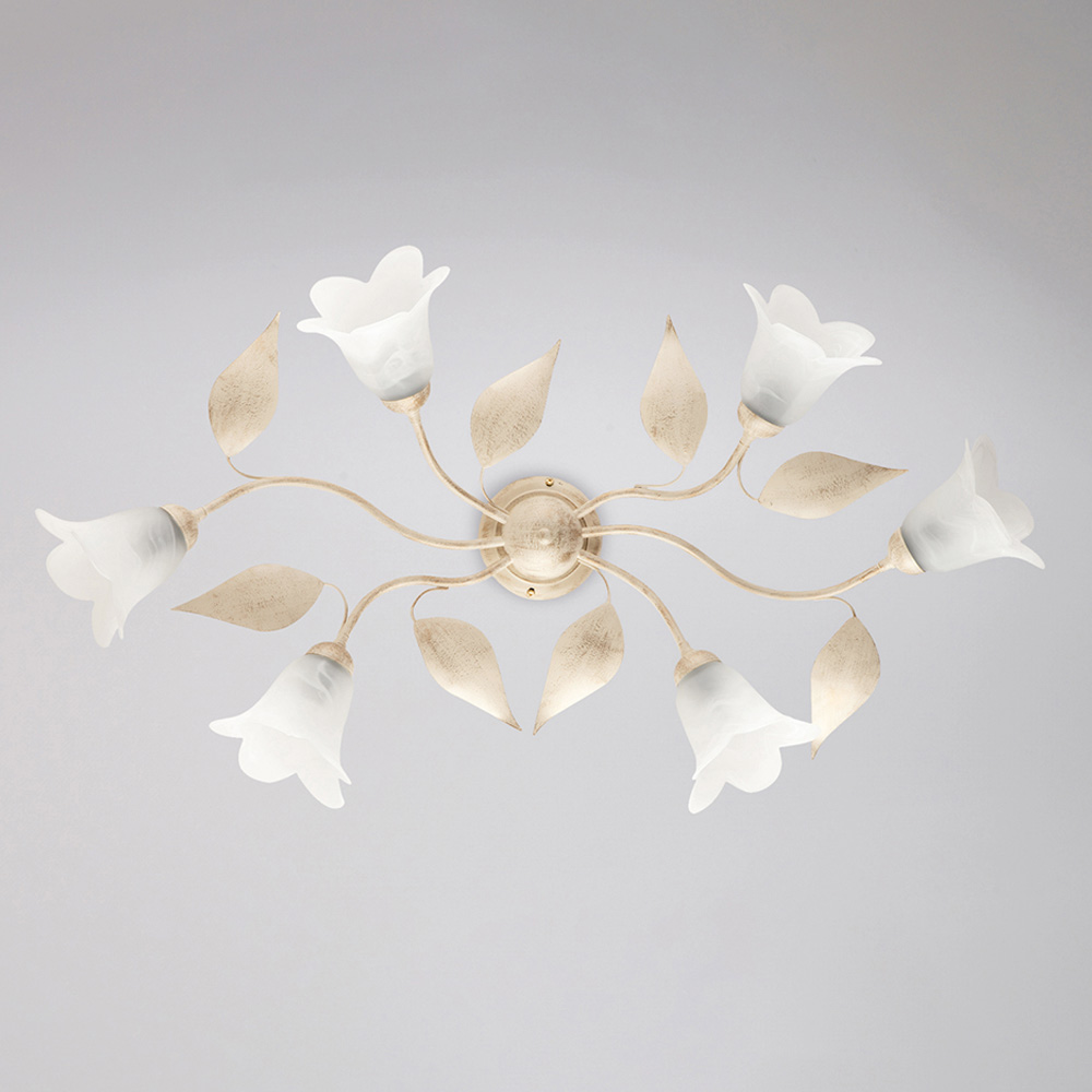 Os materiais cuidadosamente selecionados — ferro e vidro — conferem um efeito elegante e uma agradável emissão de luz. Fabricada inteiramente na Itália, esta luminária de teto é o resultado de um trabalho artesanal meticuloso que aprimora tanto a estética quanto a funcionalidade.