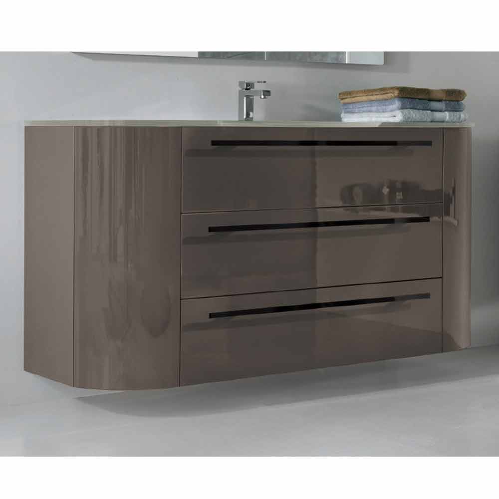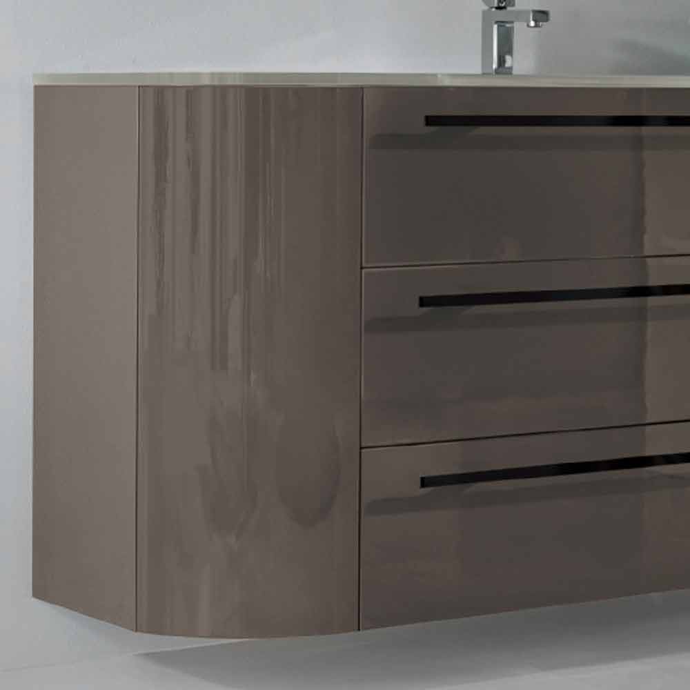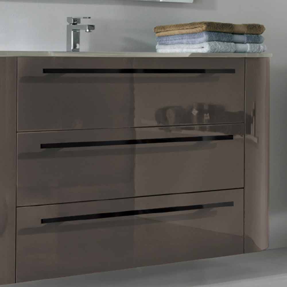 Armário de banheiro com 3 gavetas (96 cm) e 2 portas redondas (24 cm cada), alças cromadas. Happy é feito de madeira laqueada, acabamento brilhante e está disponível em diferentes tonalidades de cor.