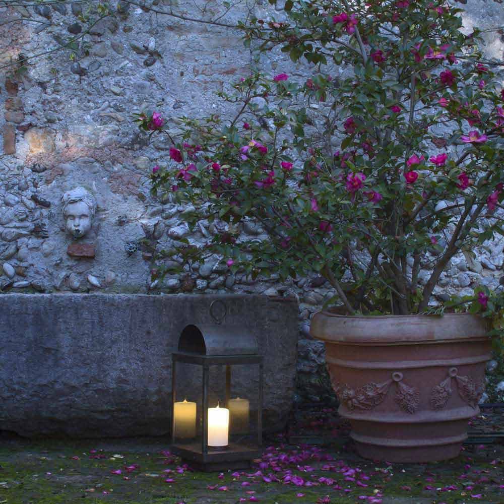 Ferro ao ar livre e lanterna de latão com vela Il Fanale
