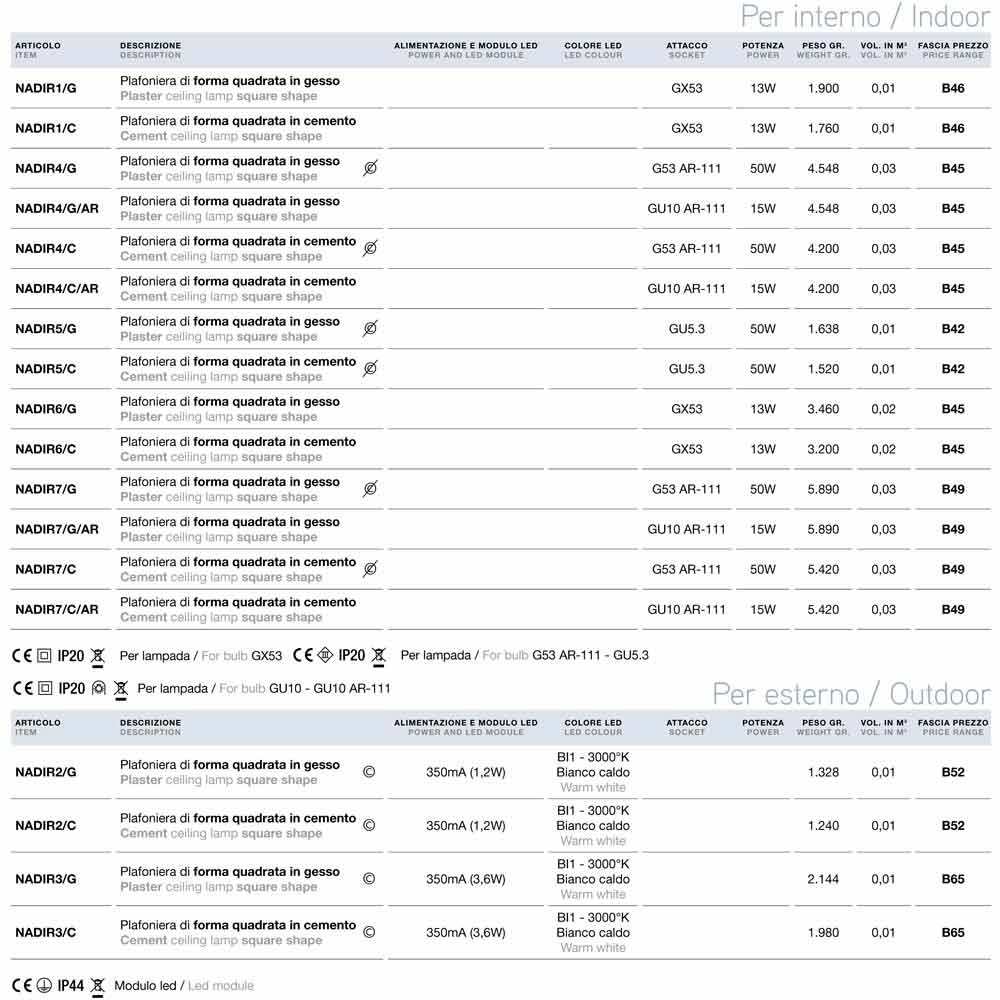 Plafon moderno de forma quadrada para exterior LED Nadir 2 por Aldo Bernardi , disponível na versão de concreto ou gesso.