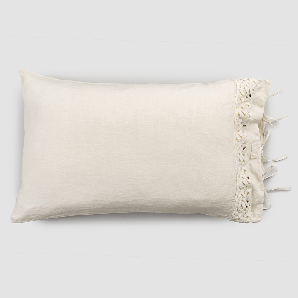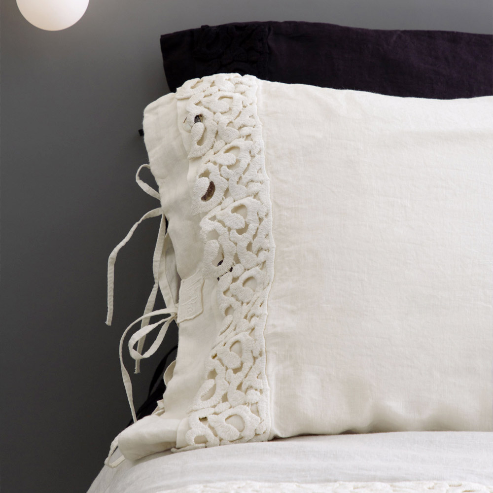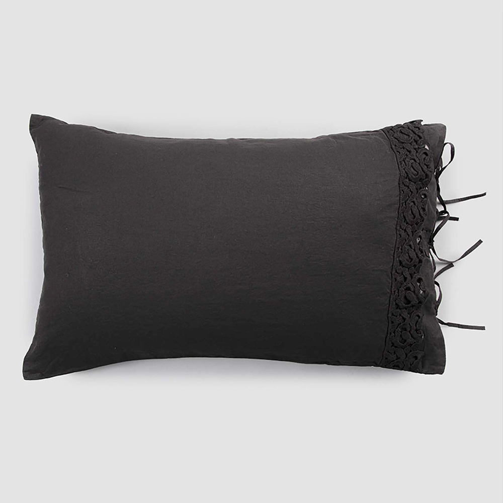 Fronha em linho preto ou manteiga com renda poema, artigo de luxo made in Italy.