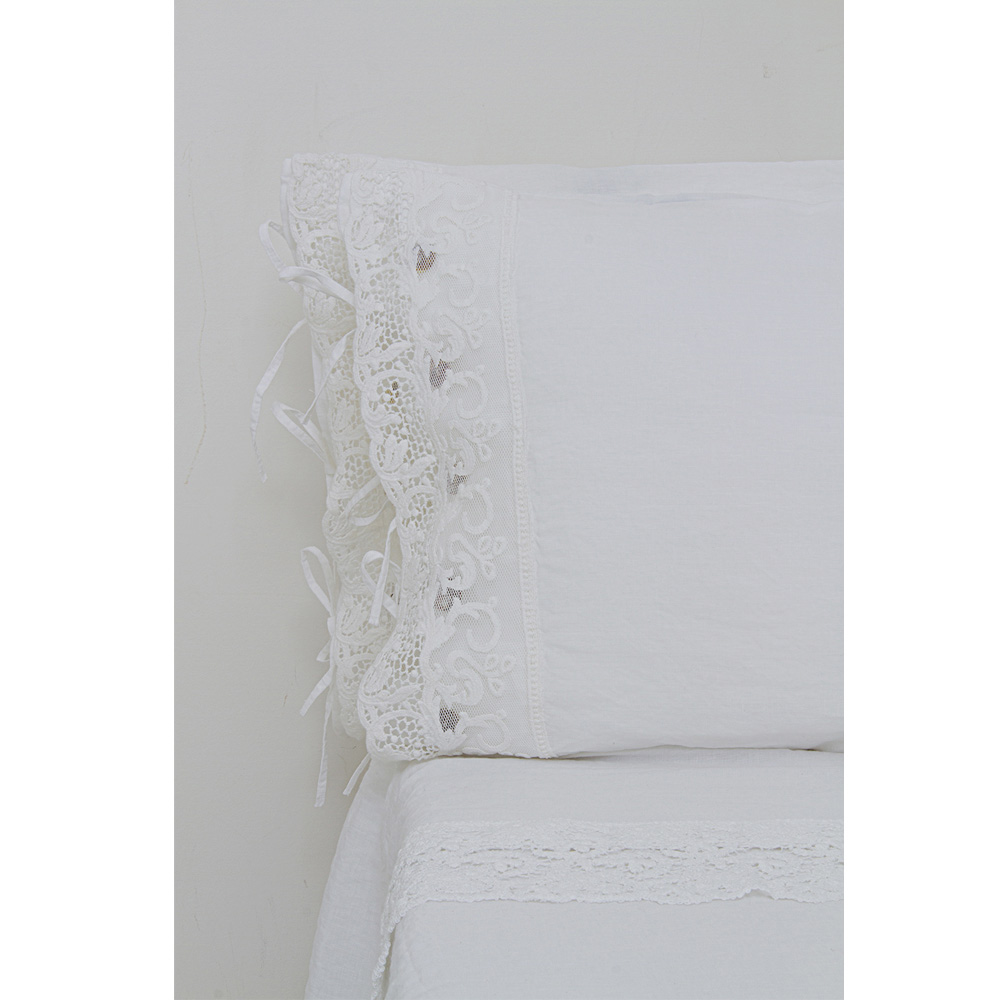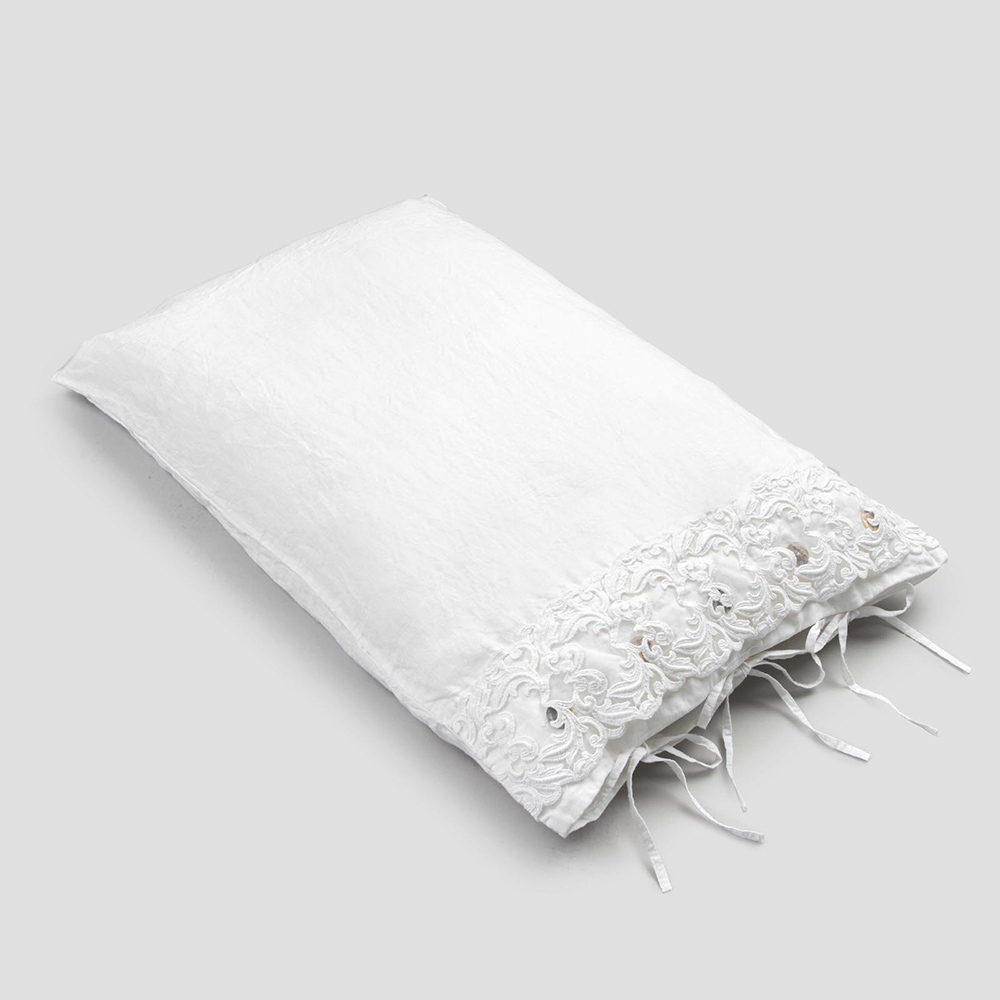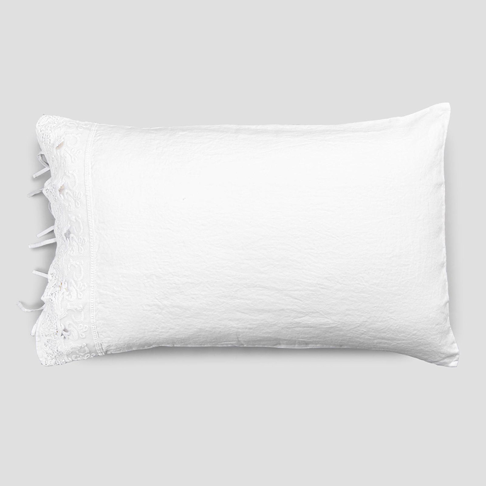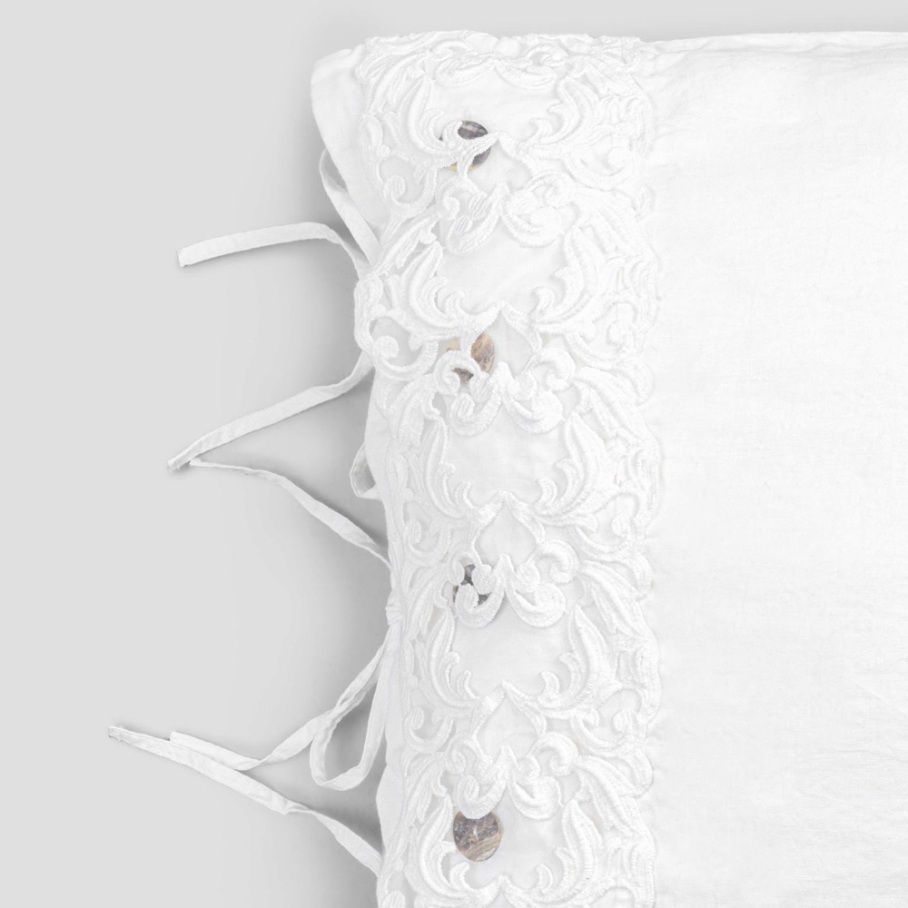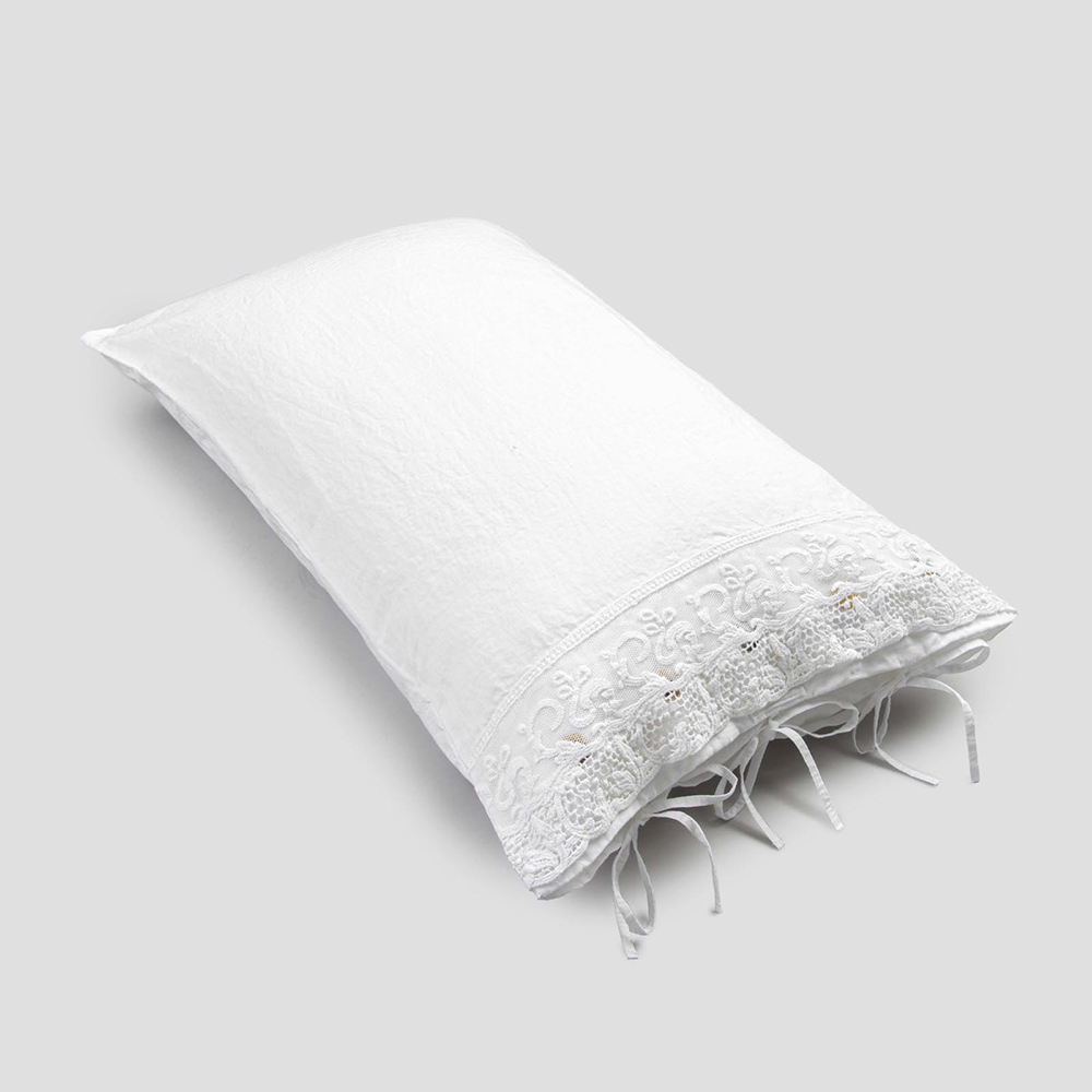 fronha de linho branco embelezada com
