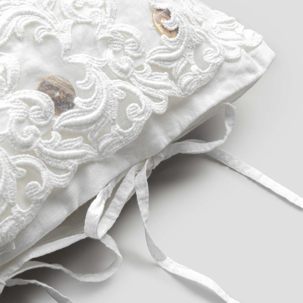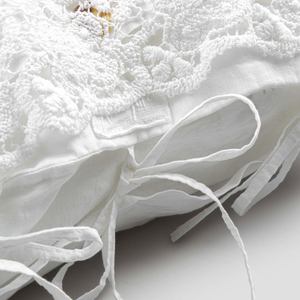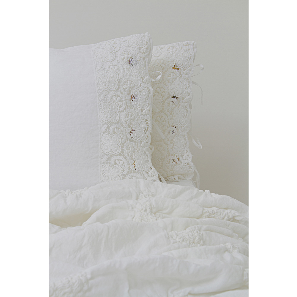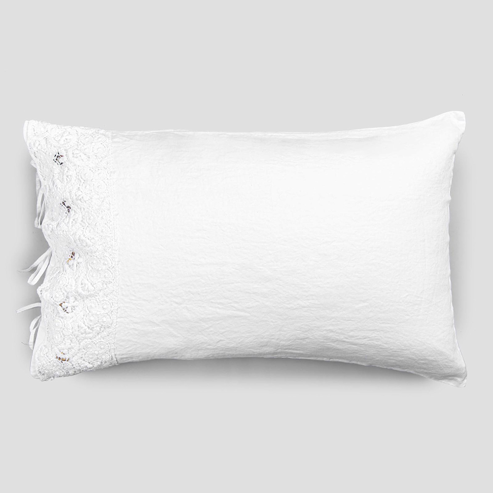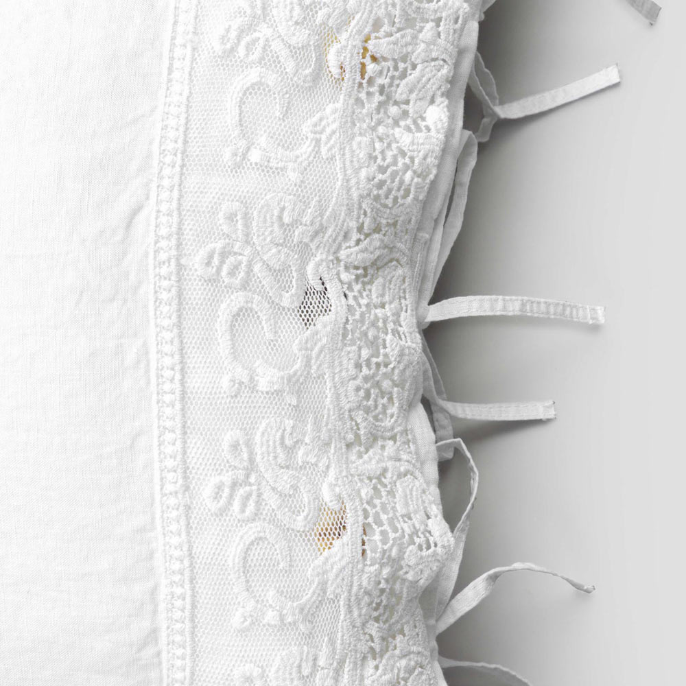 fronha de linho branco embelezada com