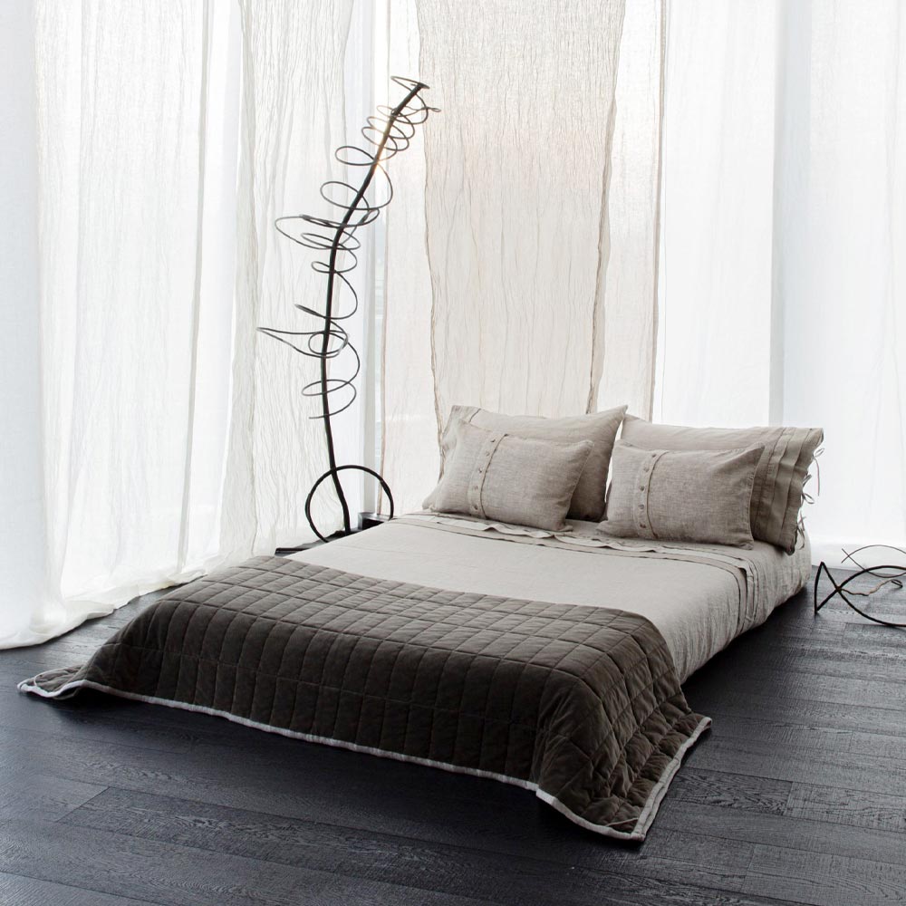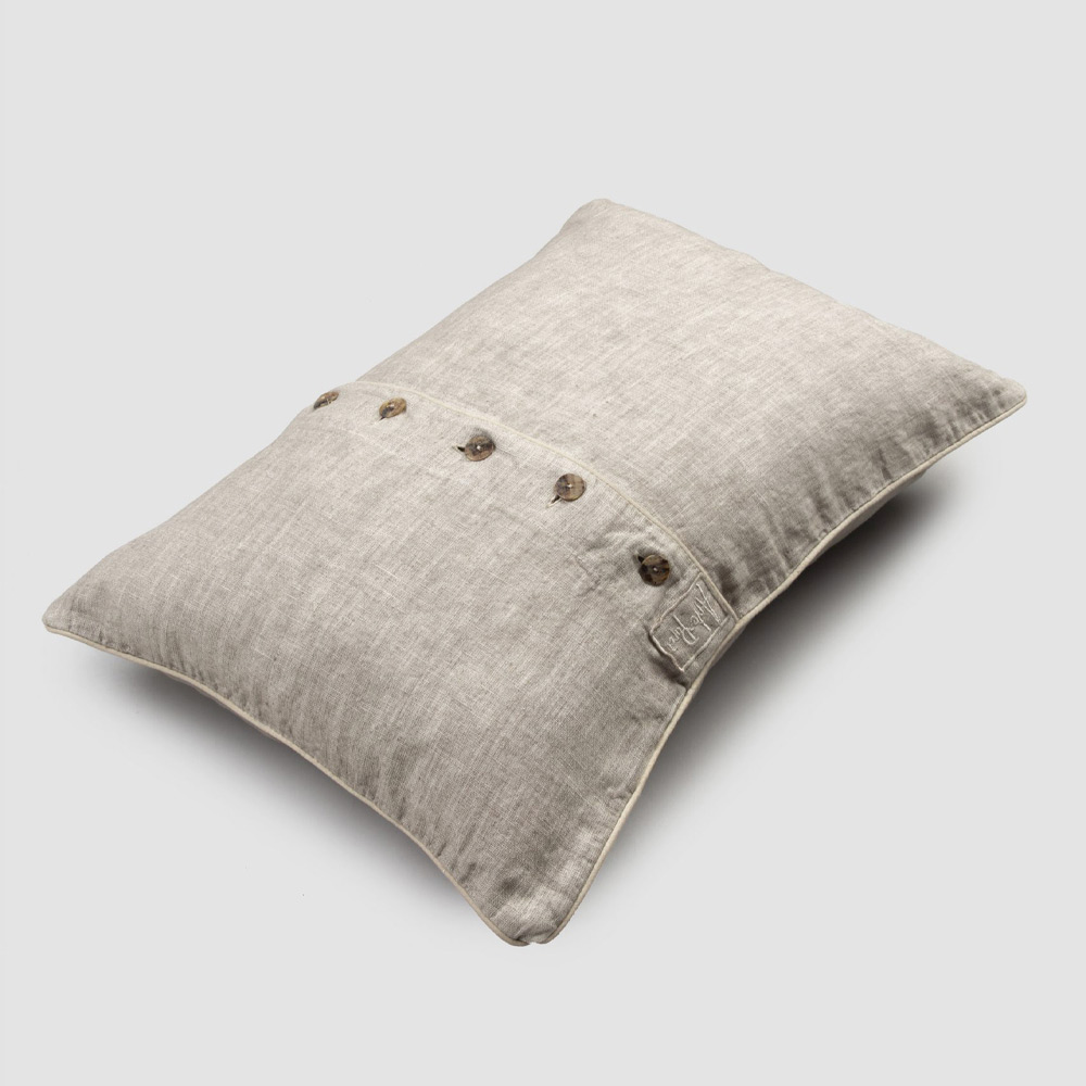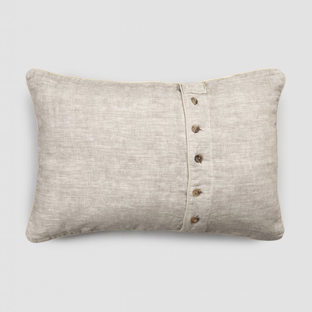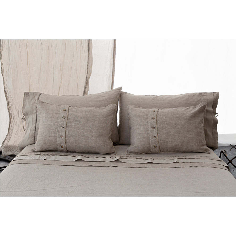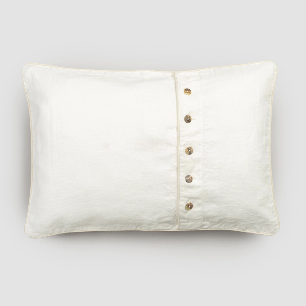 Fronha retangular de linho com renda, botões e borda elegante made in Italy.