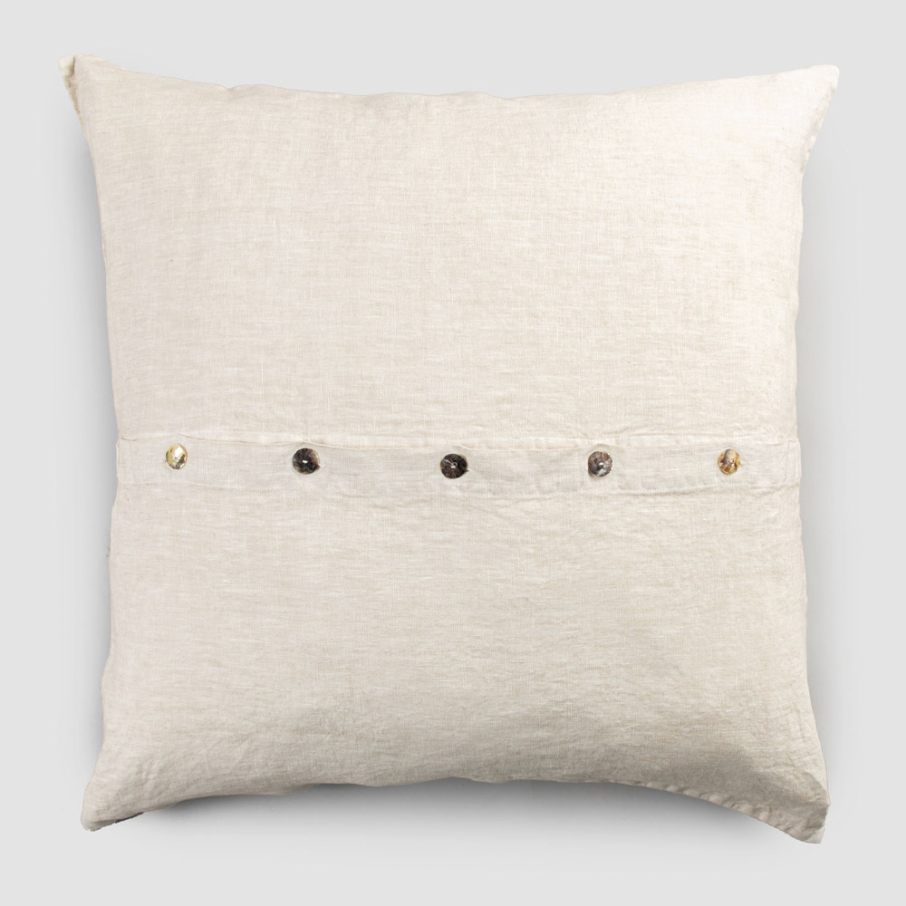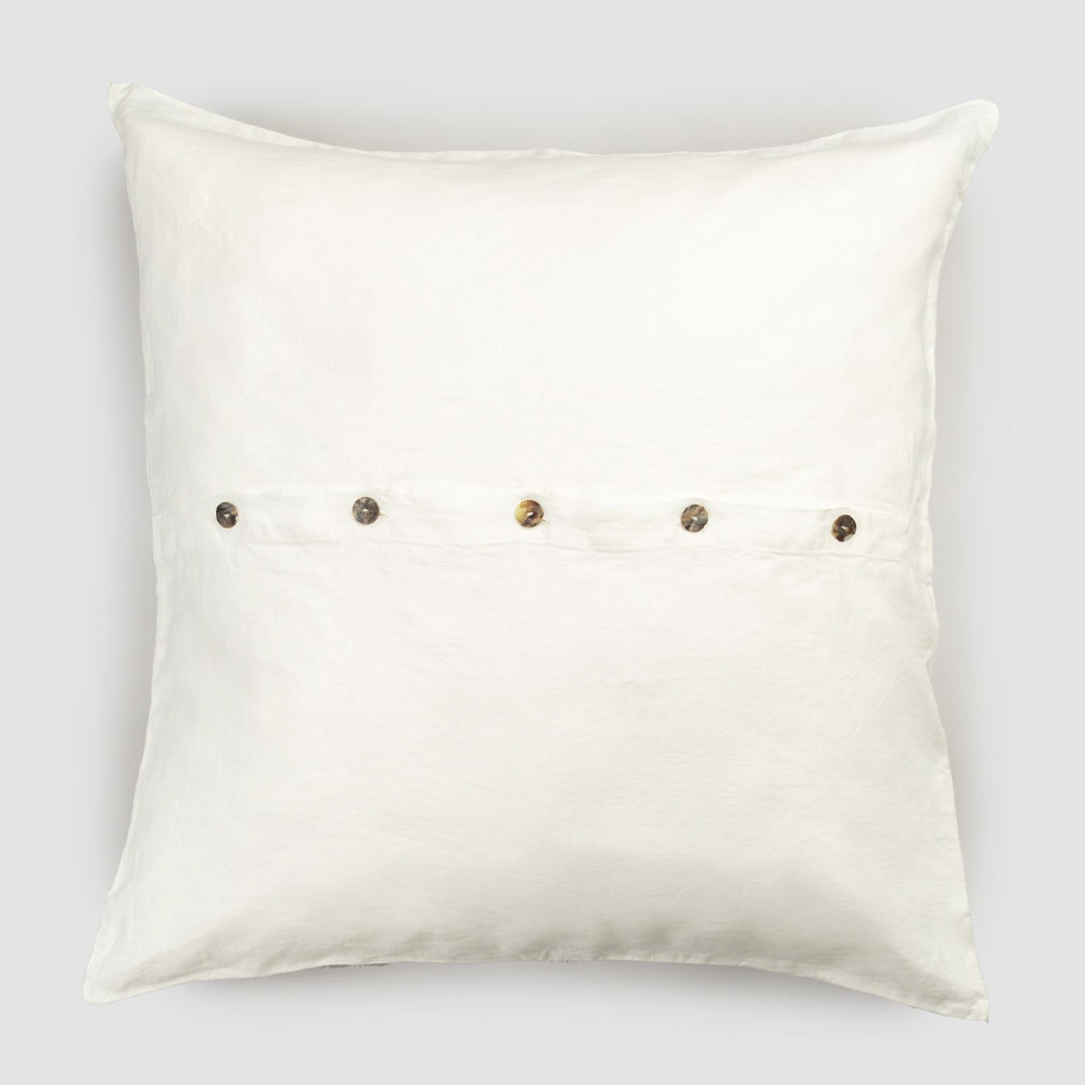 Fronha de linho com fecho central com botões em madrepérola, 2 acabamentos de luxo made in Italy.