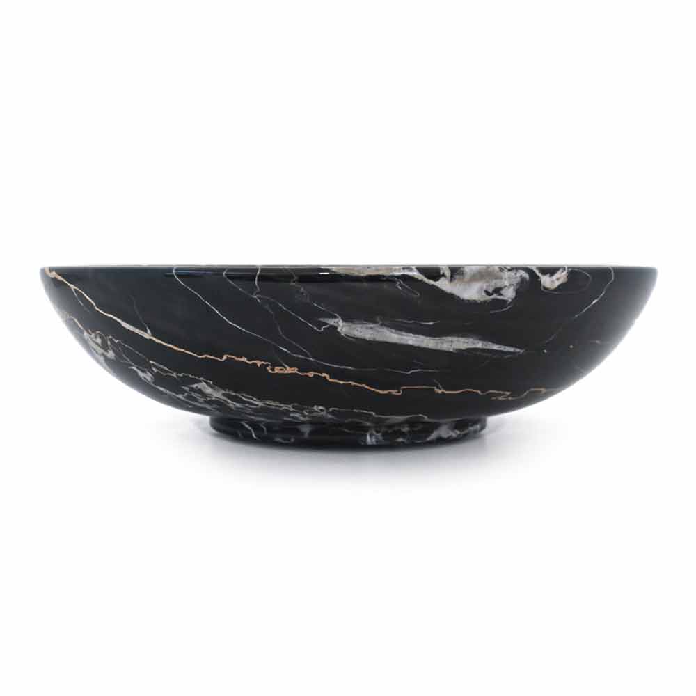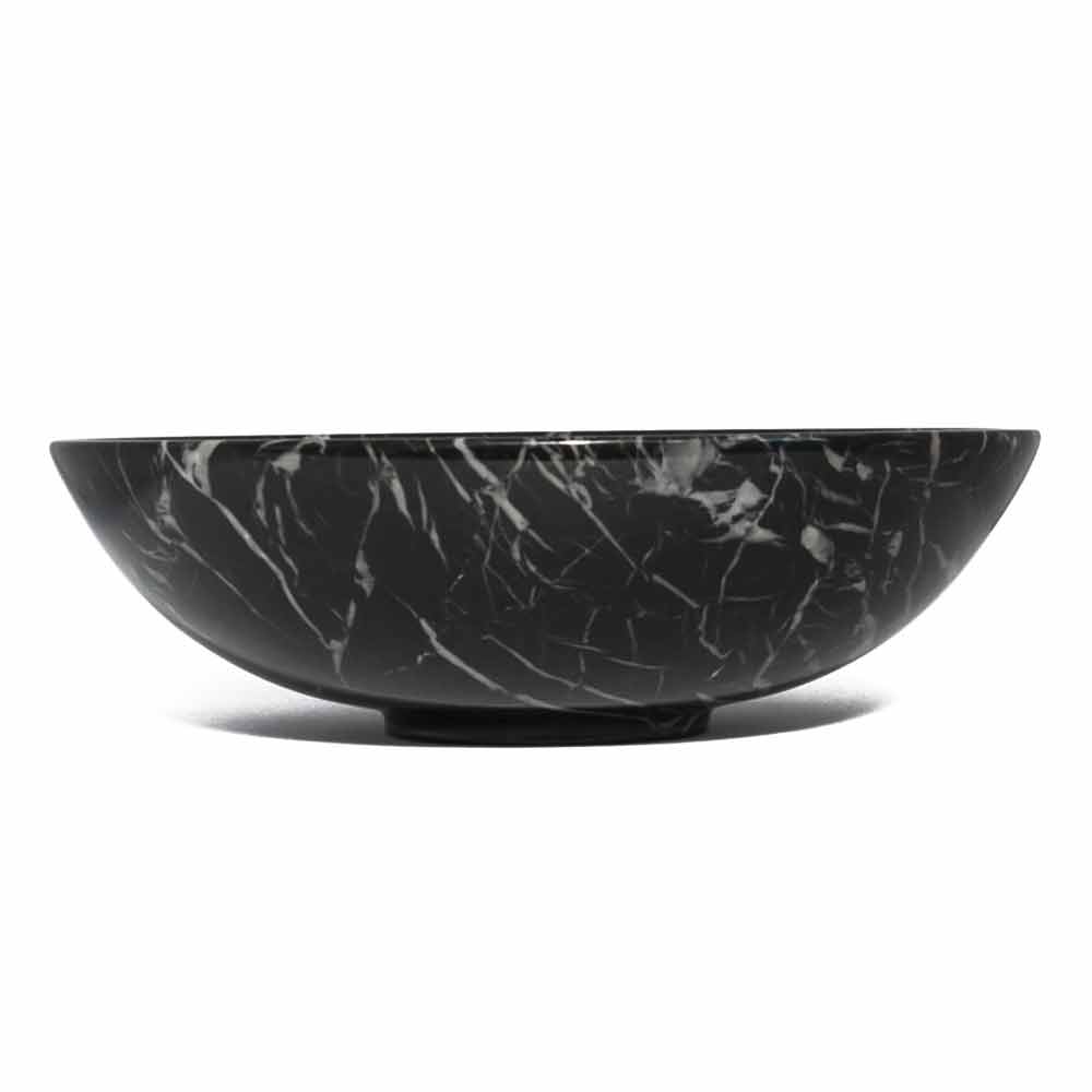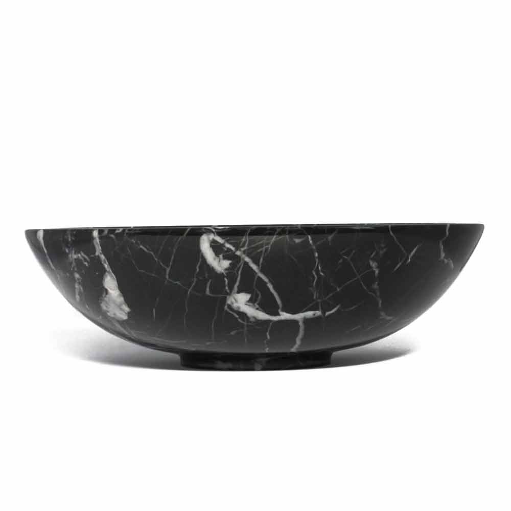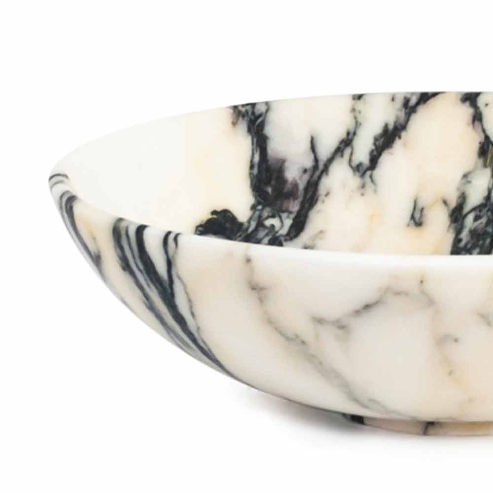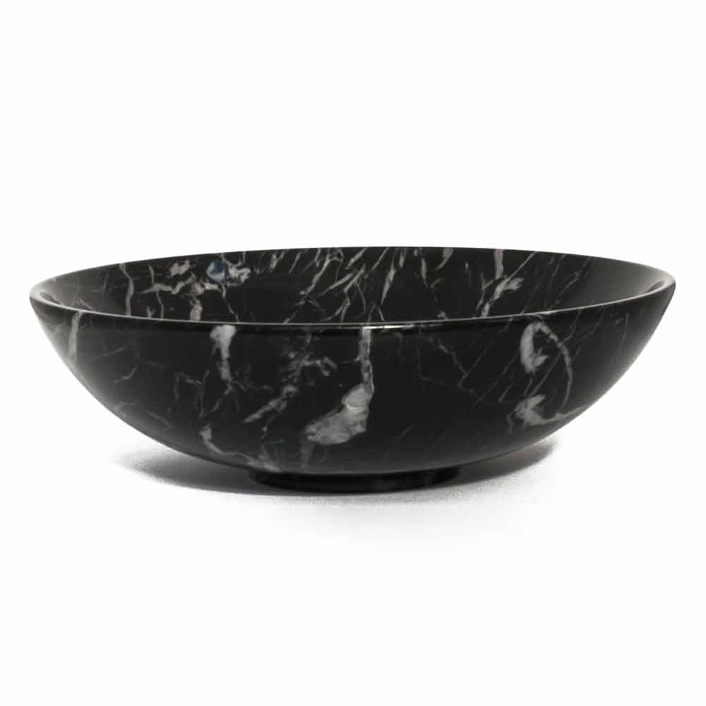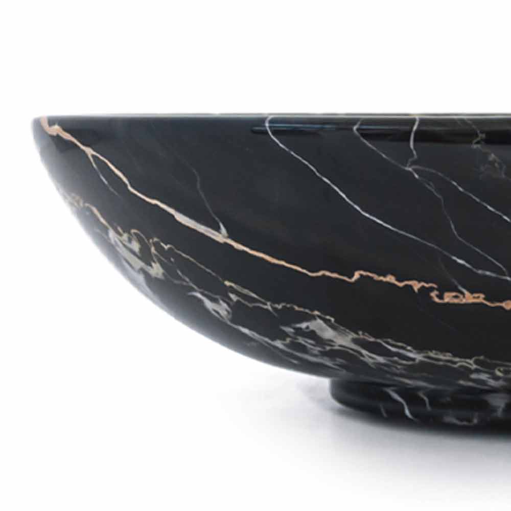 Fruteira de desenho redondo em mármore Portoro, Paonazzo ou Marquinia Fabricado na Itália.
