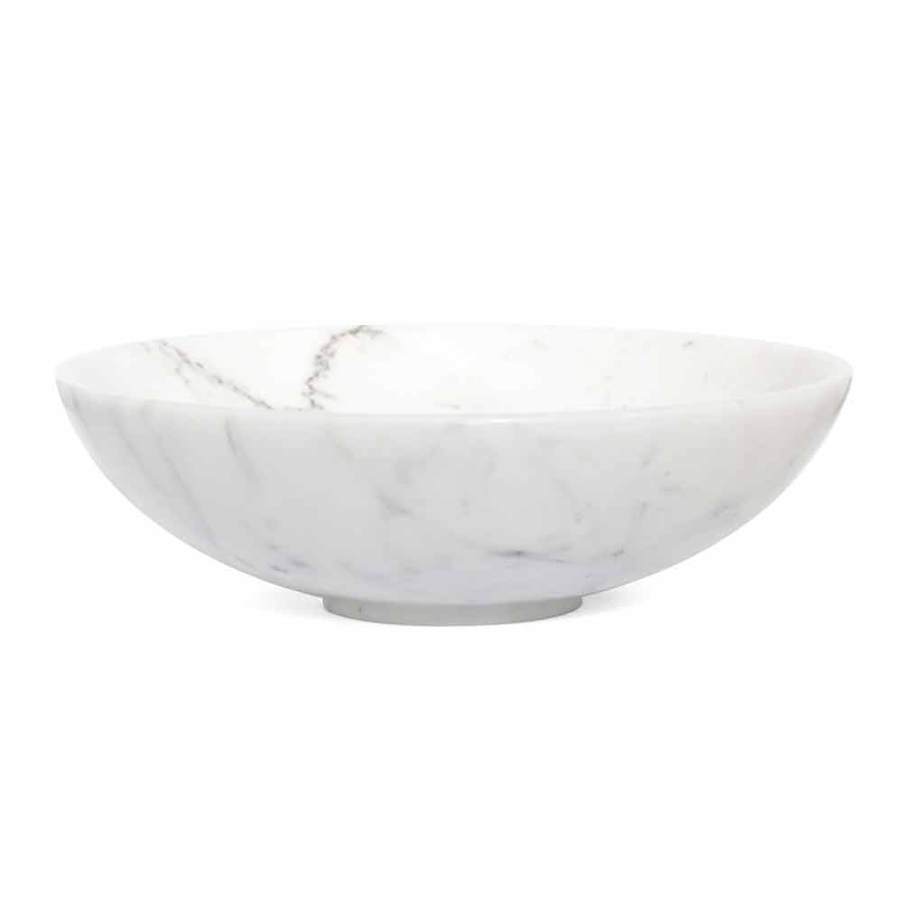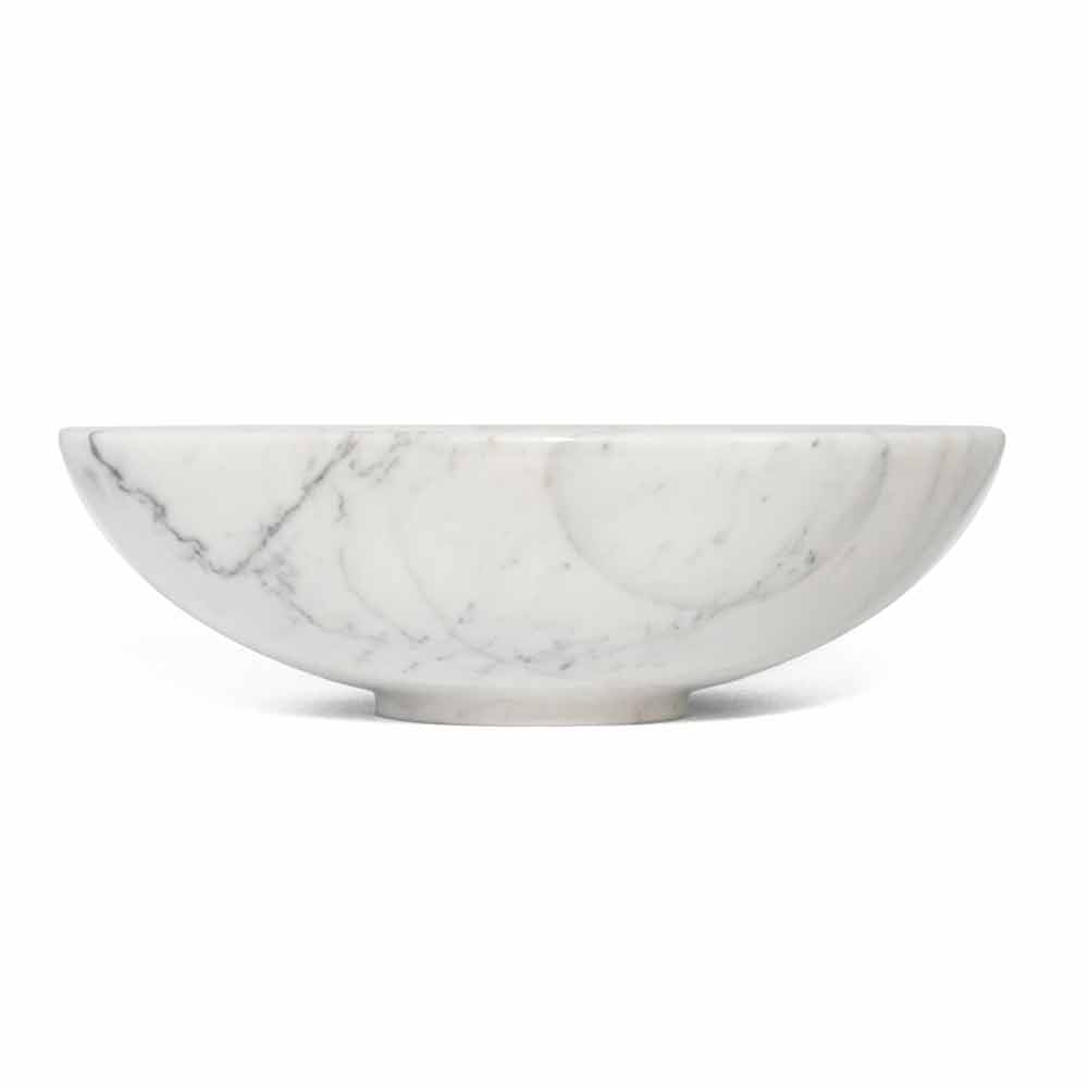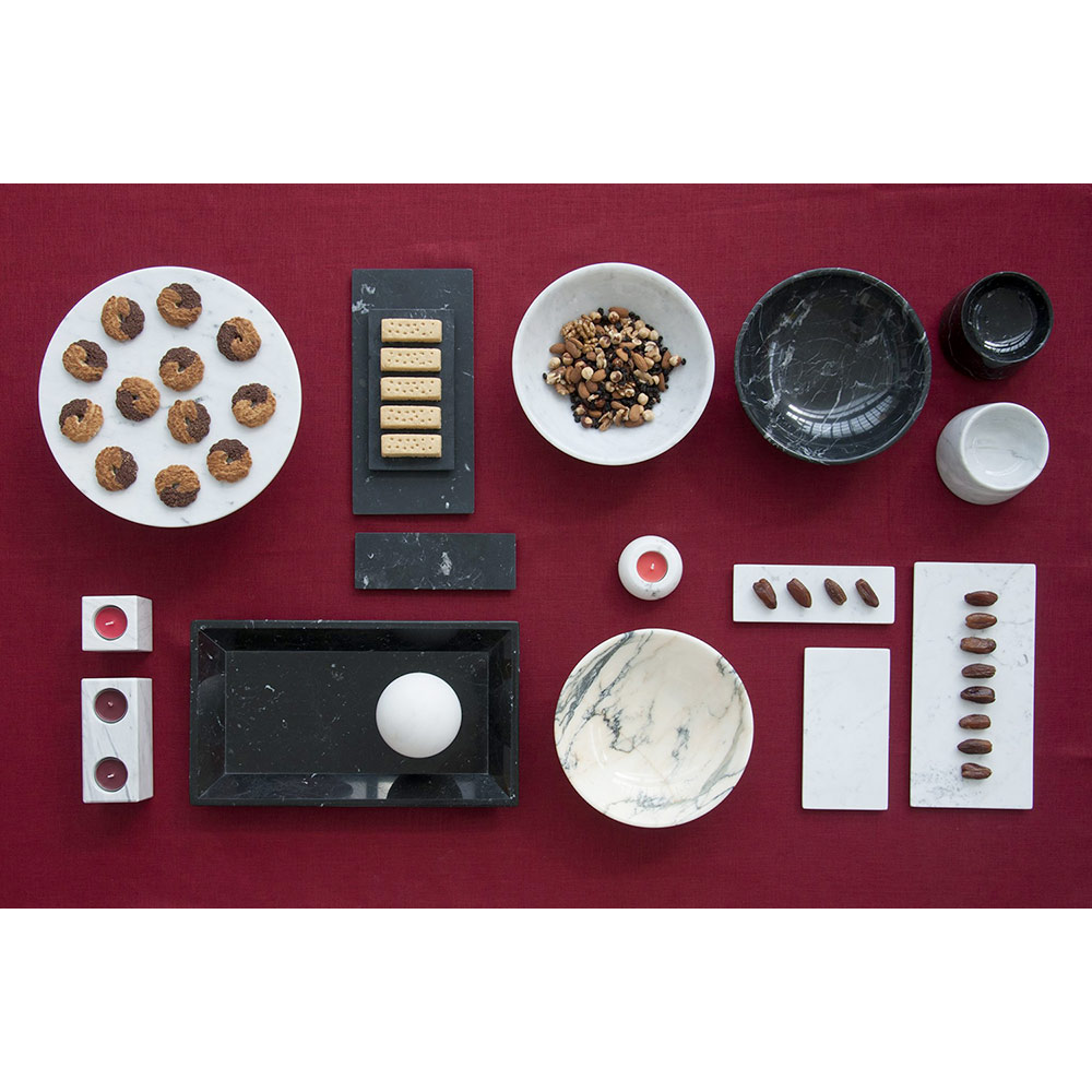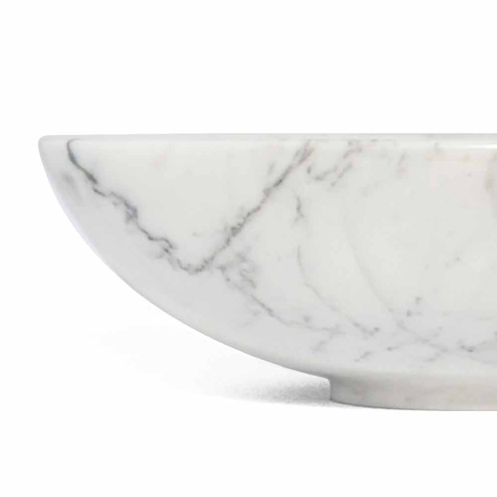 Fruteira redonda caracterizada pelo precioso mármore com o qual é trabalhada artesanalmente por profissionais especializados. É uma peça única pois cada bloco de mármore utilizado difere dos demais pelos veios e tonalidades.