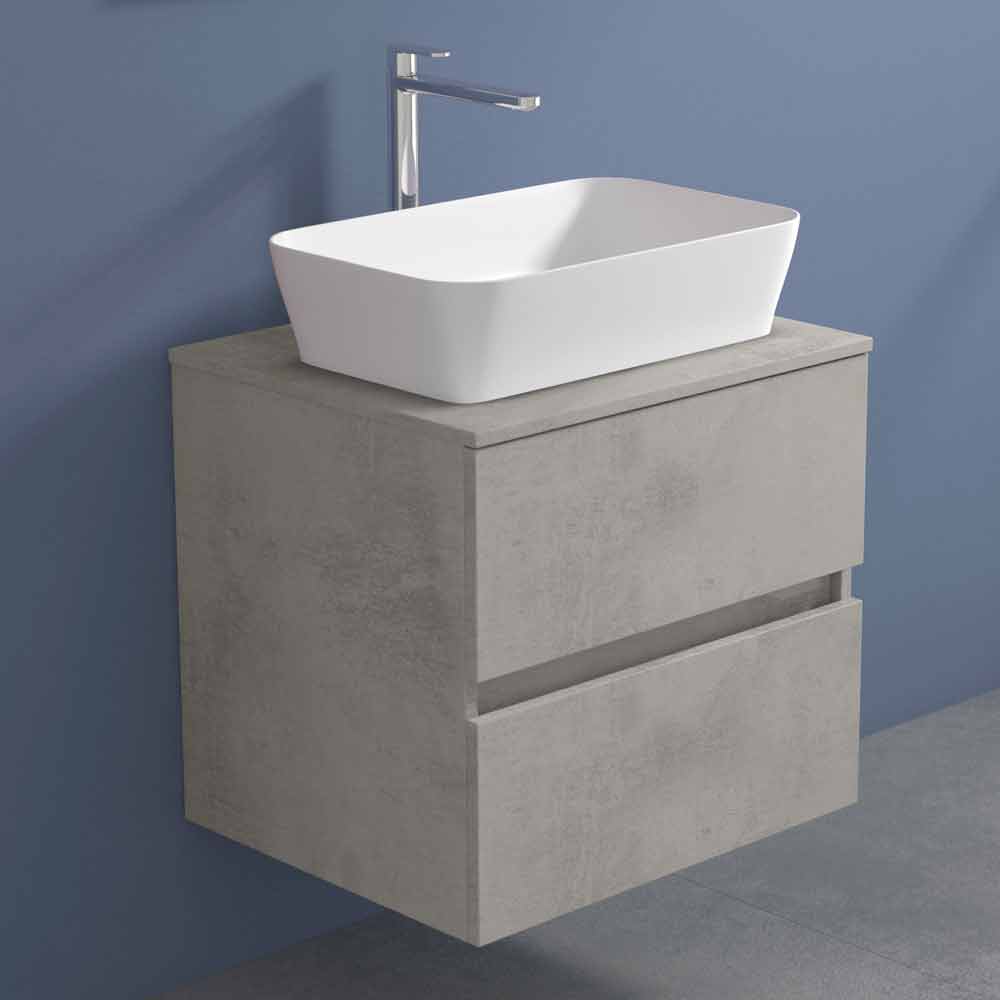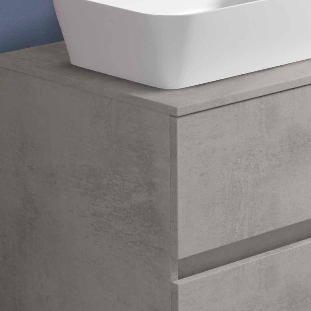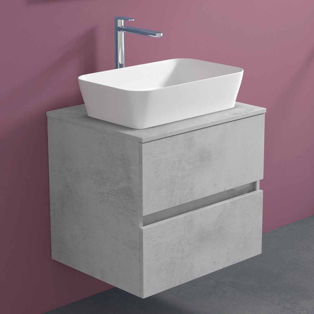 Os móveis suspensos do banheiro apresentam um design clean e minimalista com pia retangular de bancada , para um resultado moderno e atemporal que também atenta à praticidade e funcionalidade.