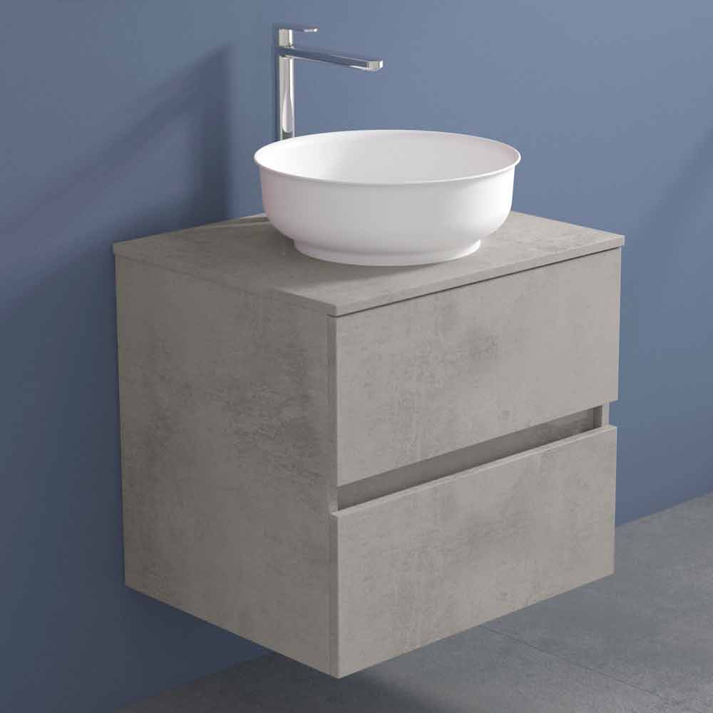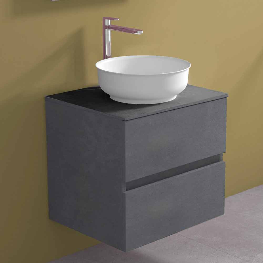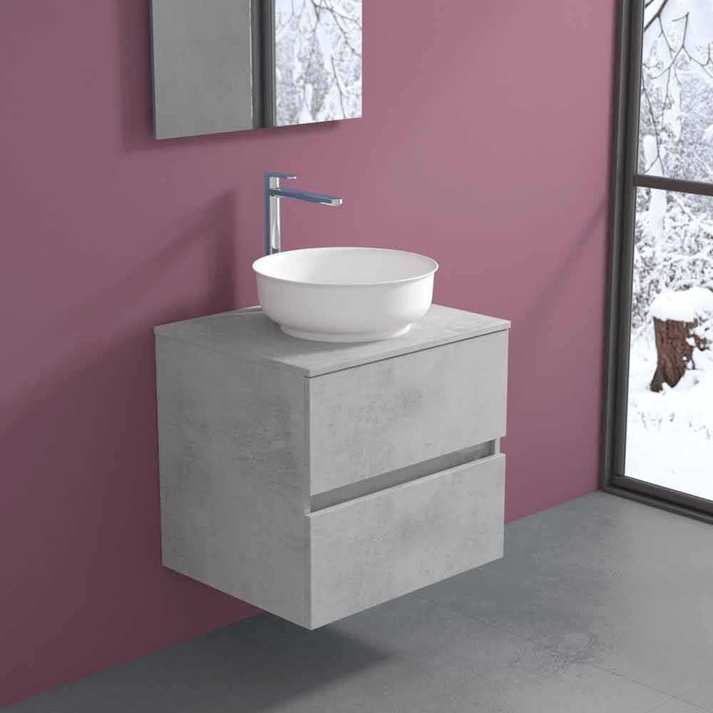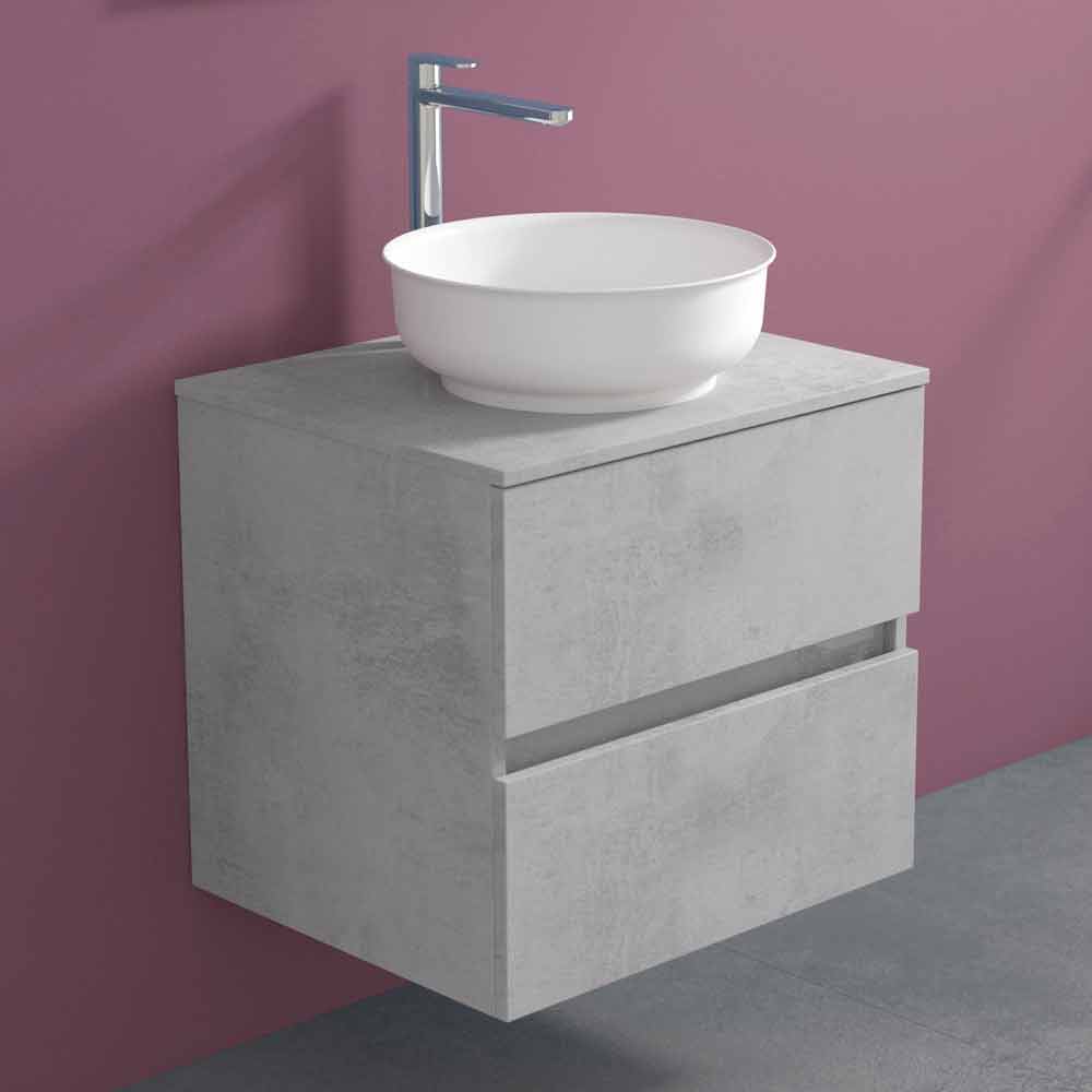 É um móvel de banho suspenso com original e elegante lavatório redondo de bancada que confere à estrutura um design moderno e sofisticado que não quer abrir mão da praticidade e da funcionalidade.