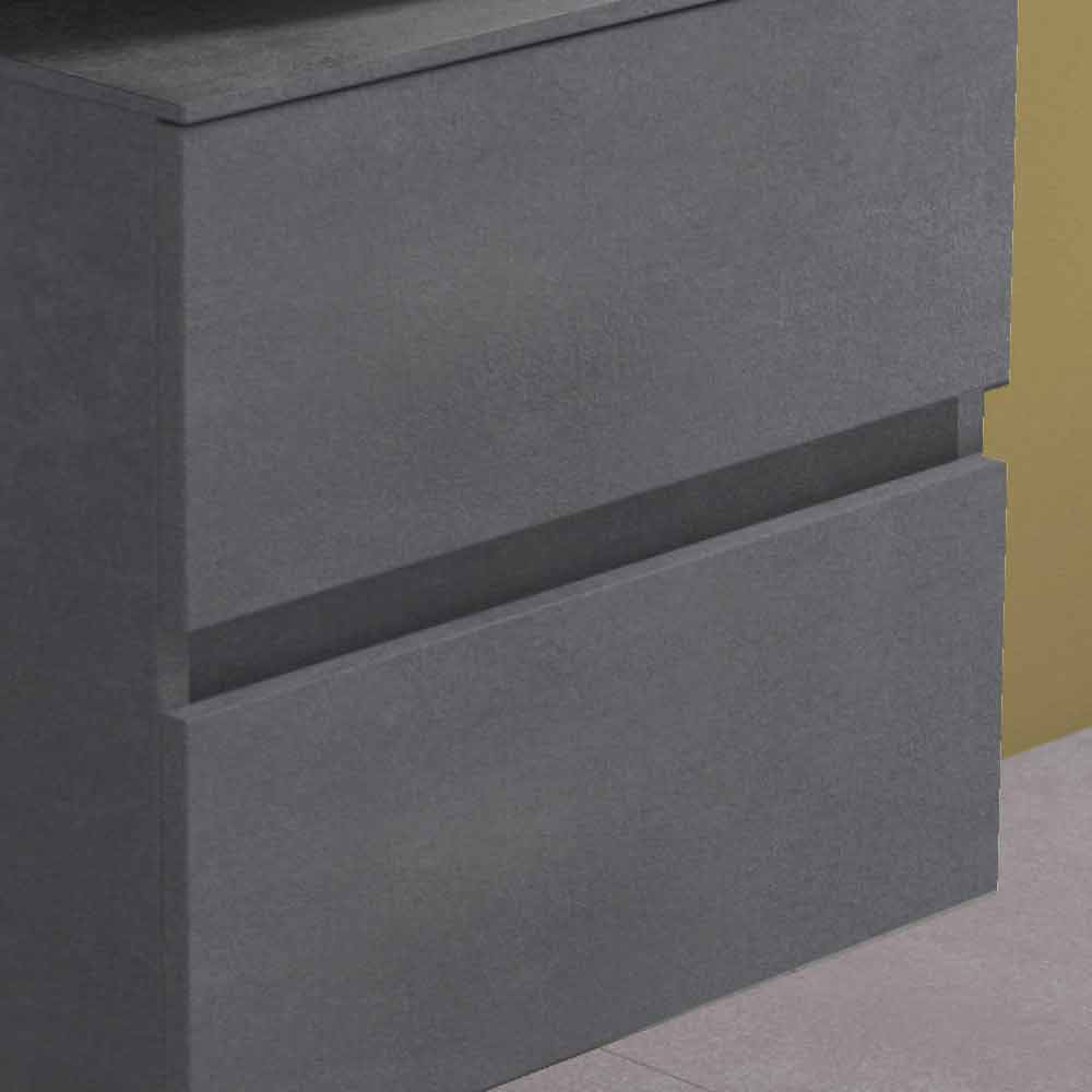 O fundo do lavatório com gaveta e gaveta modelada é fabricado em fibra de madeira laminada e hidrorrepelente W 100 , de forma a garantir maior durabilidade e evitar que o móvel seja danificado pelo contacto com a água.