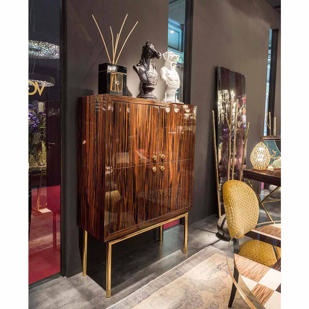 Gabinete de design moderno Ada com 4 portas, feito de ébano, acabamento brilhante.