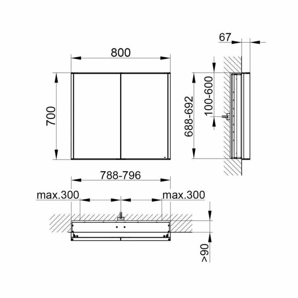 Esta versão semi-embutida tem uma saliência de apenas 6,7 cm da parede permitindo obter um