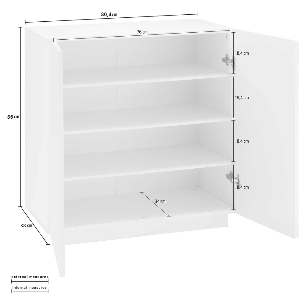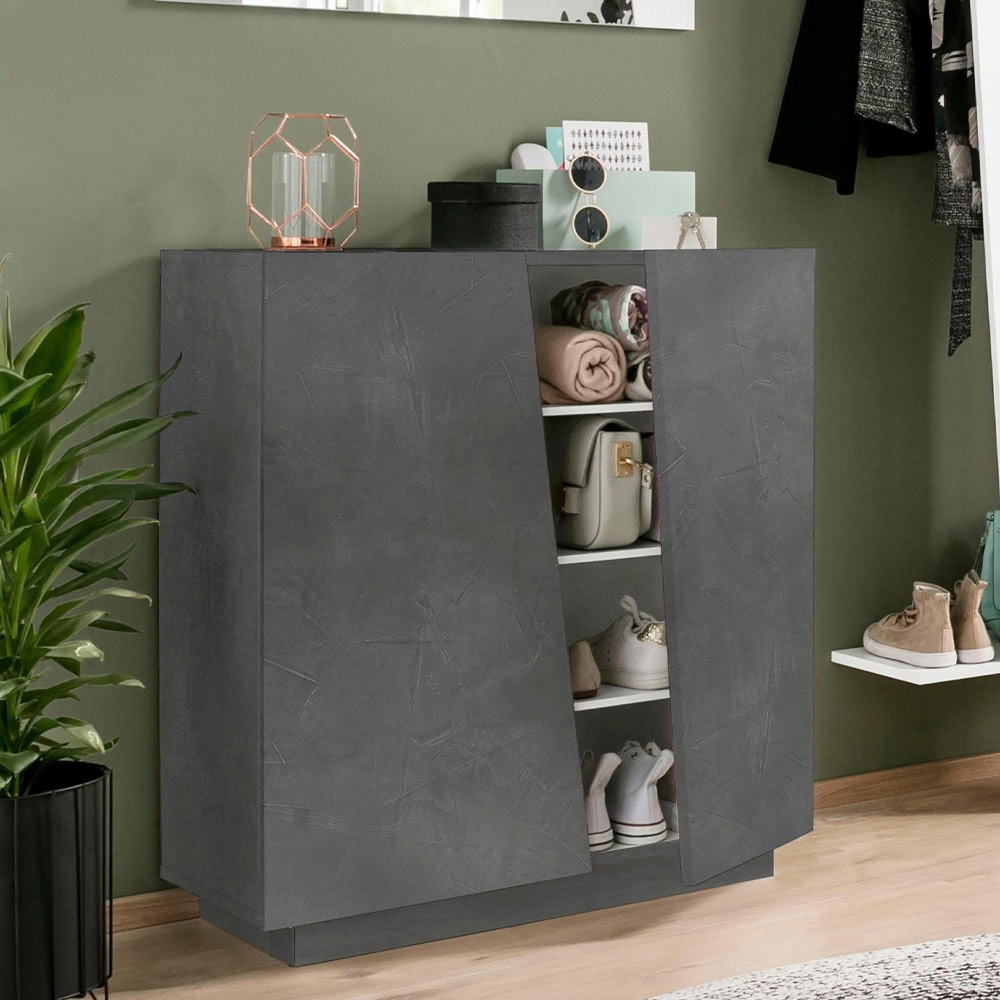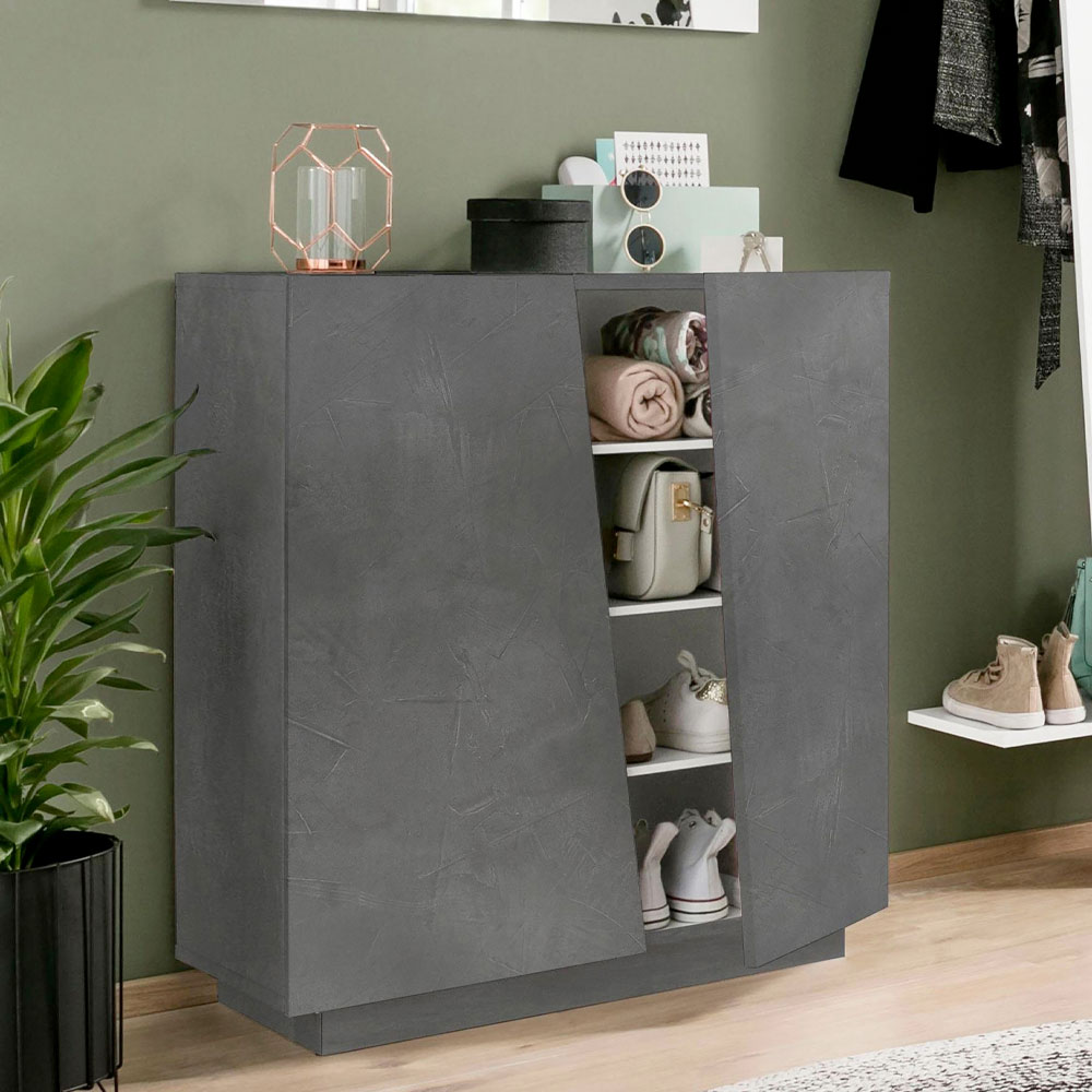 Sapateira em madeira melamínica sustentável com 2 portas e 2 acabamentos, fabricada na Itália.