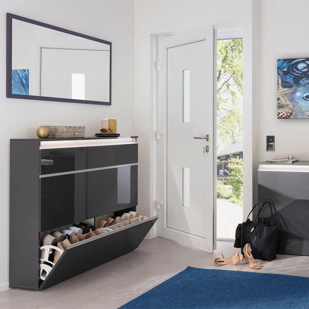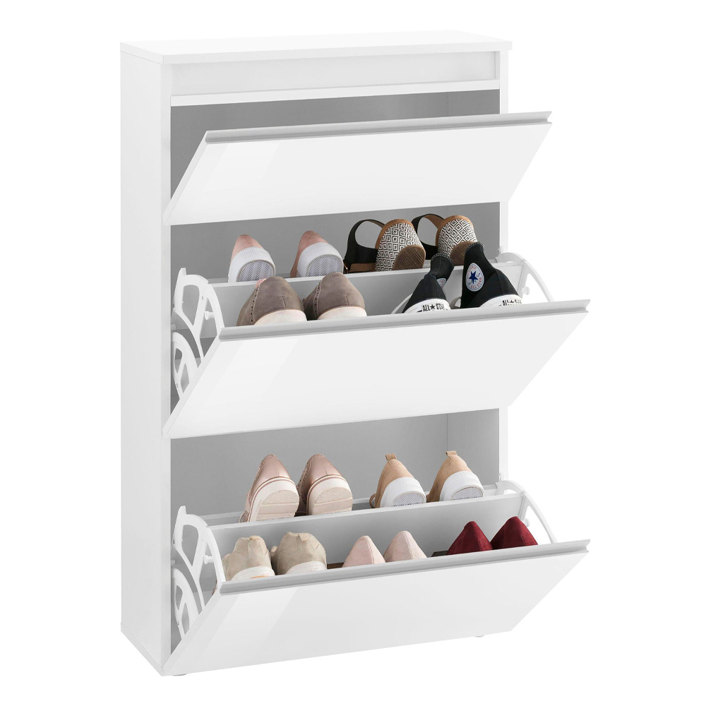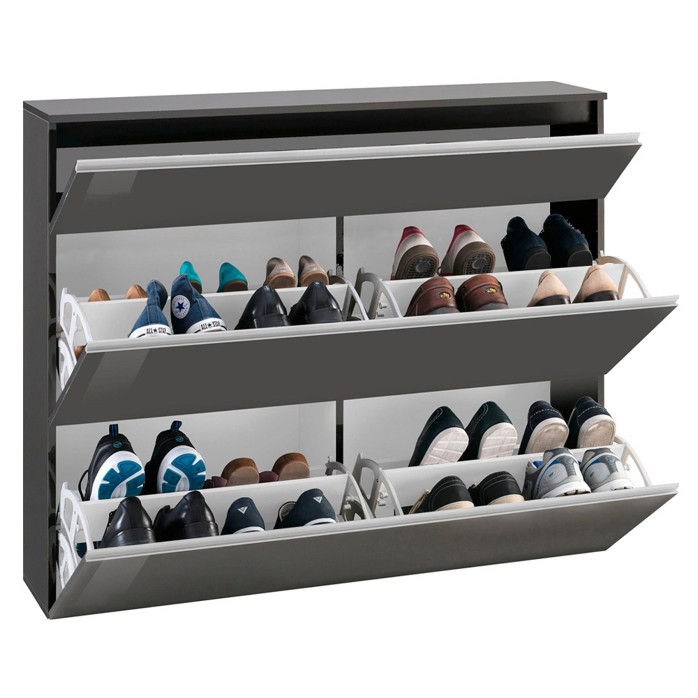Made in Italy sapateira de design com 3 portas em branco brilhante ou madeira de ardósia.