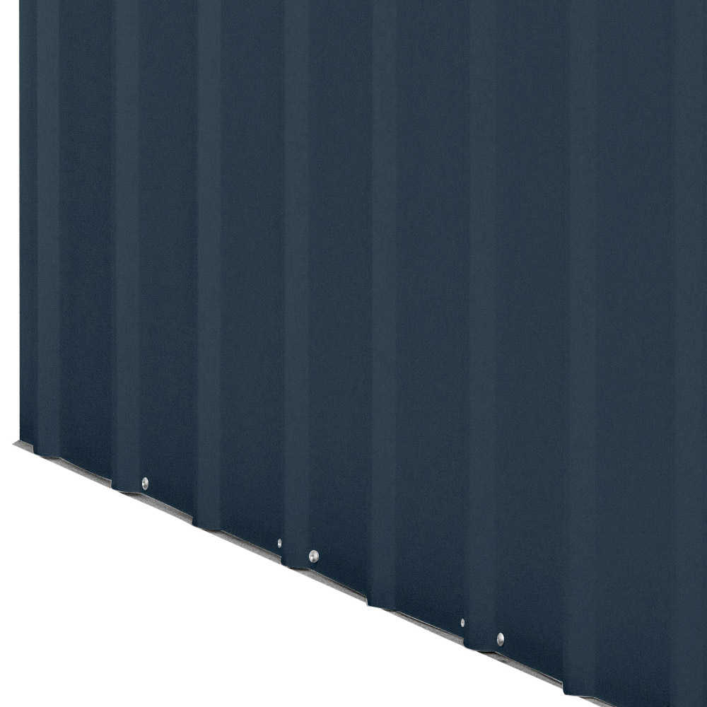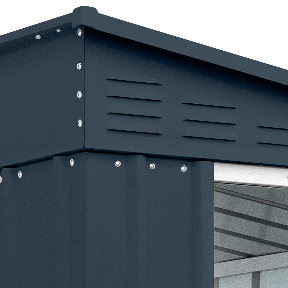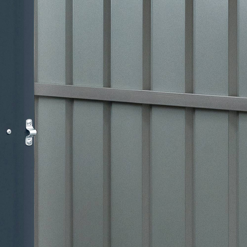 A cor escura e o design do painel vertical conferem um aspecto moderno que se adapta perfeitamente a qualquer jardim ou espaço exterior, mantendo a harmonia estética. A porta facilita o acesso e movimentação de objetos volumosos, tornando a casa extremamente funcional .