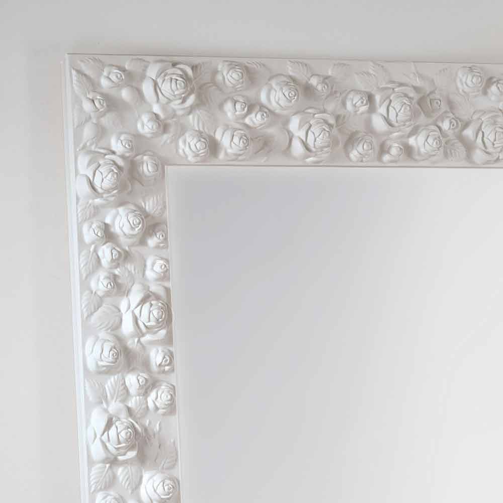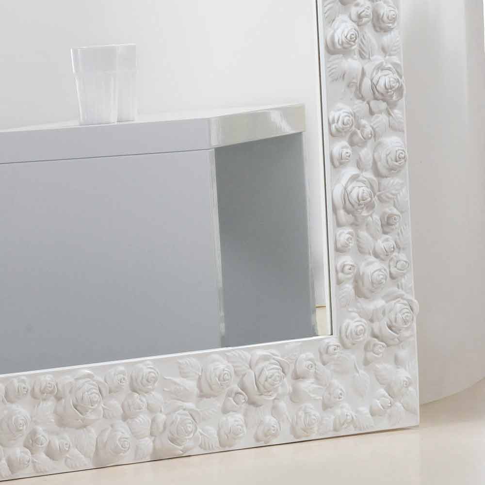 Grande espelho de chão / parede branco com moldura de madeira Flower