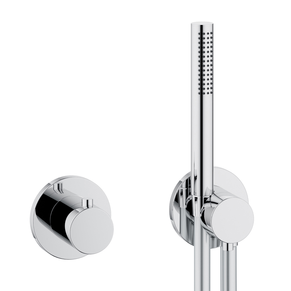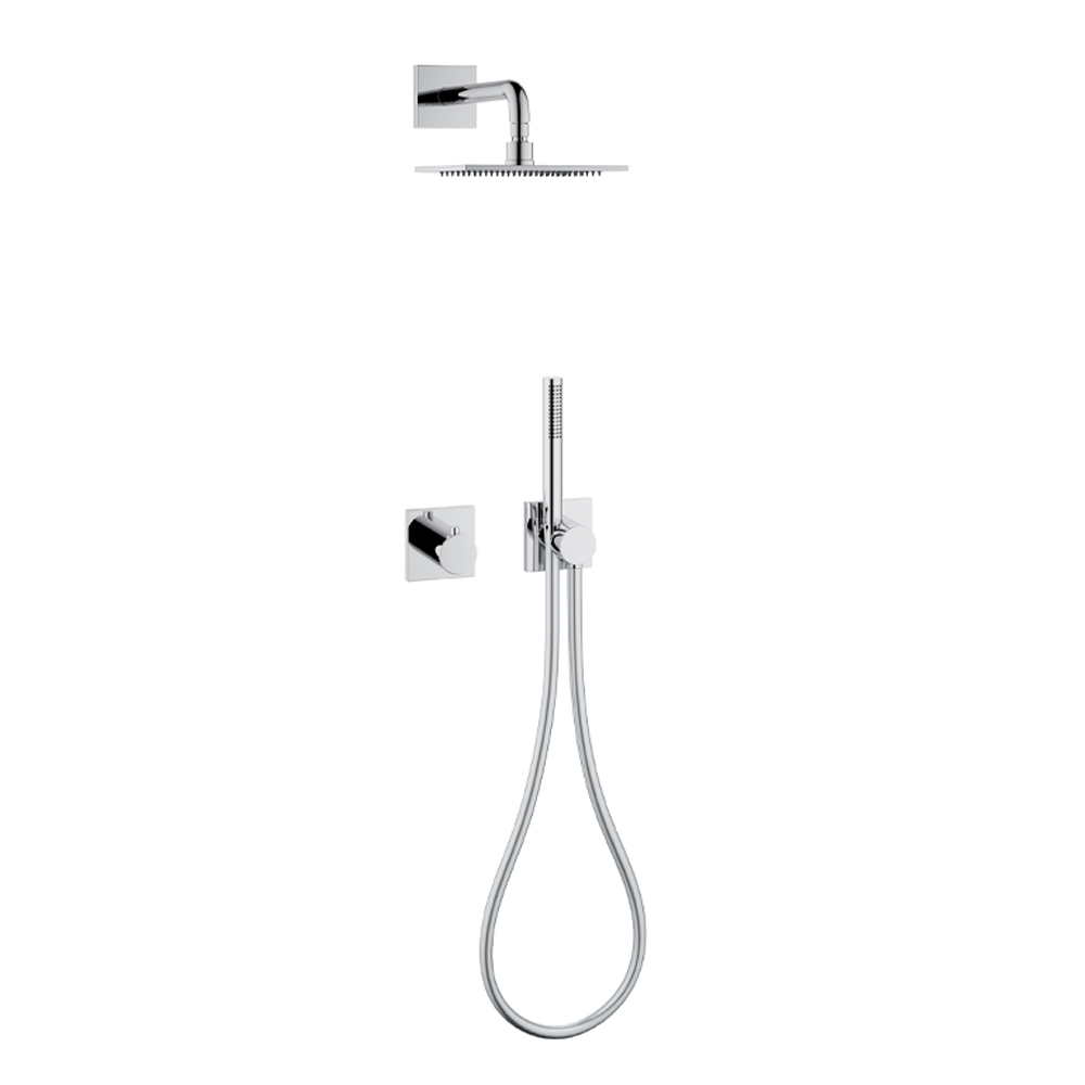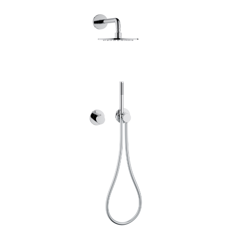 Conjunto de duche com misturador monocomando mínimo e cabeça de chuveiro.