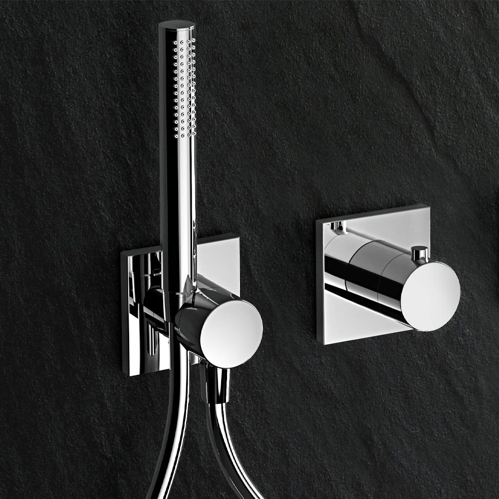 - Válvula de bloqueio bidirecional oculta e desviador com conexão de mangueira flexível e suporte de chuveiro de parede