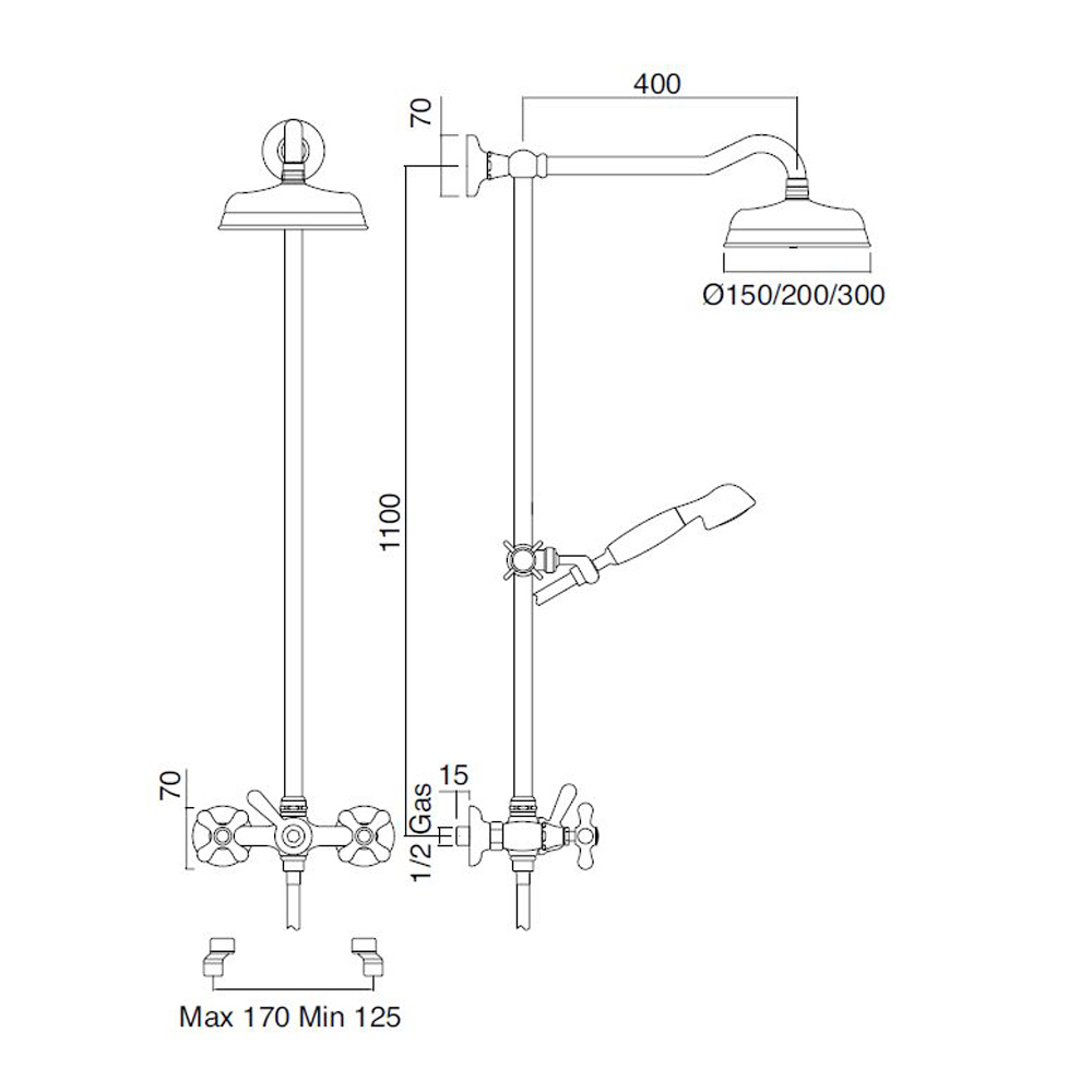 Grupo de duche duplex de estilo clássico em latão artesanal fabricado em Itália