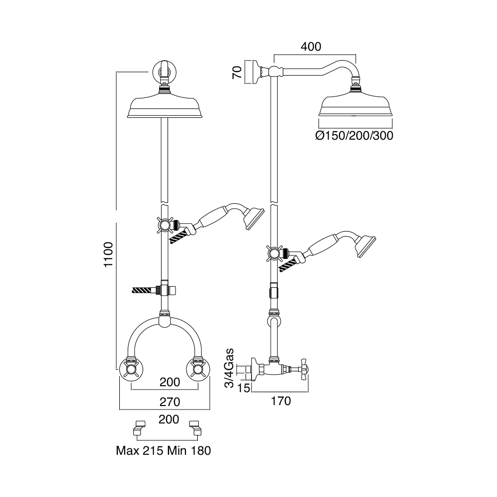 L 27 x P 40 x A 110 cm Ø chuveiro de 15 cm;