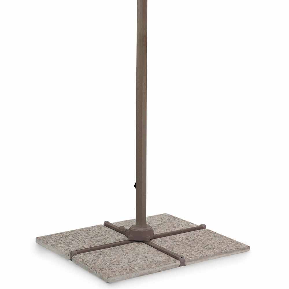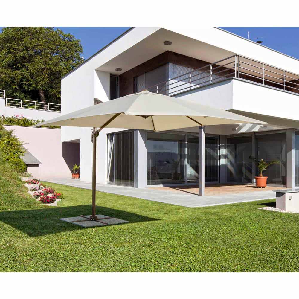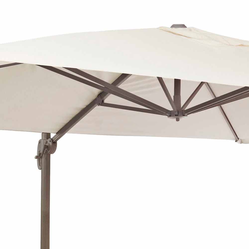 Estrutura em alumínio com revestimento em pó (poliéster). Poste de 53x77mm, poste suspenso de 25x40mm, 8 nervuras de 14x24mm. Tecido poliéster natural 200gr / m2 com revestimento pa (poliamida). Base cruzada em aço . Poste giratório em 360 ° manualmente.