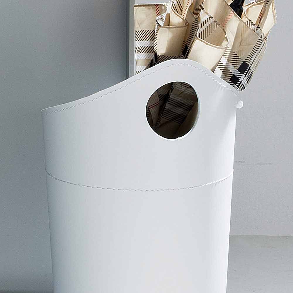 Pluvia é um guarda-chuva único no seu género, feito à mão por Italian Master Craftsmen. É feito inteiramente de couro regenerado, tanto externamente como internamente. O fundo é em compensado, também coberto de couro. Dentro há uma bandeja plástica prática.