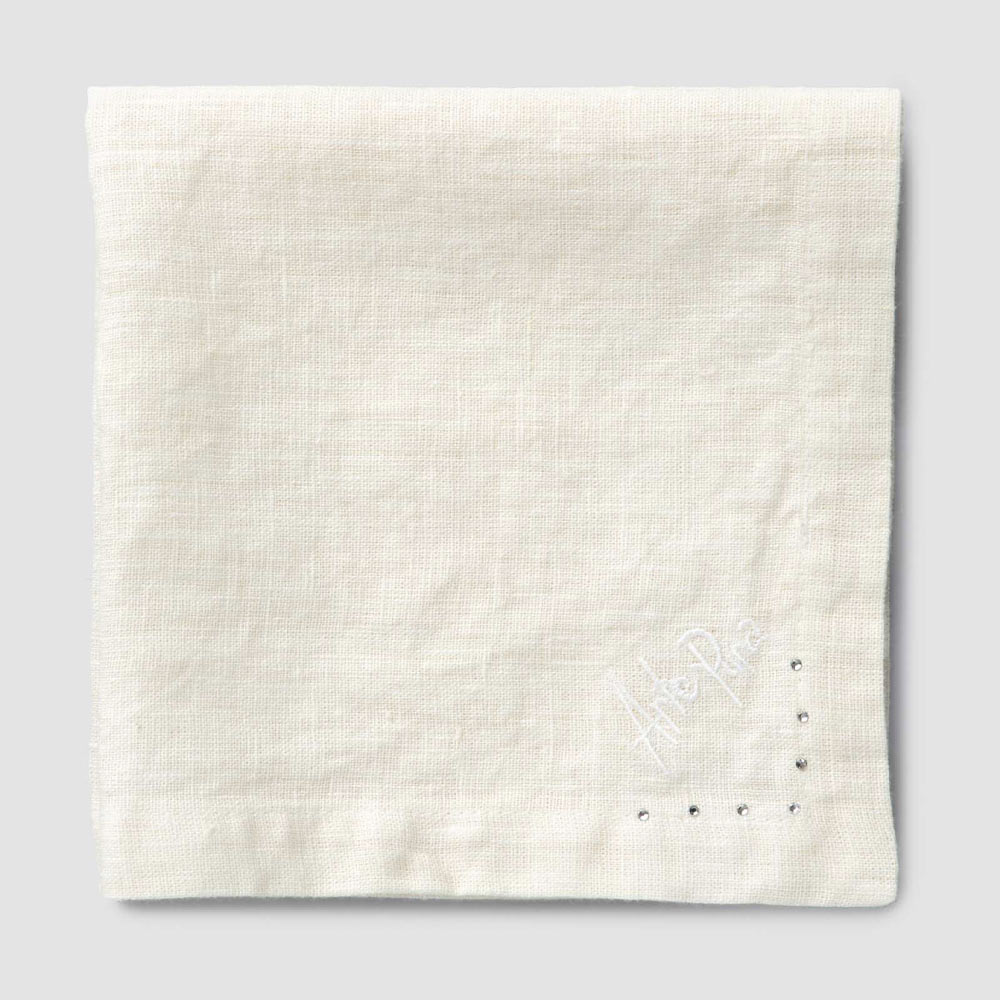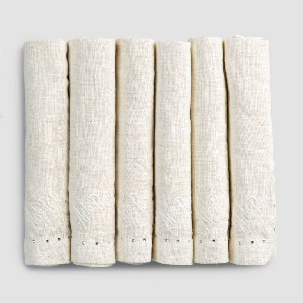 Conjunto de guardanapos em linho preto ou manteiga com cristais, 6 peças luxuosas made in Italy.
