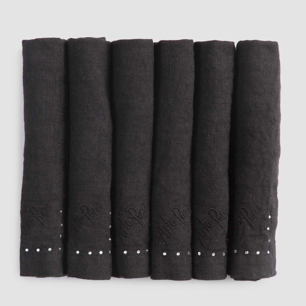 serviço de 6 guardanapos em linho preto ou manteiga enriquecidos