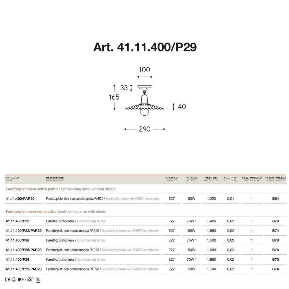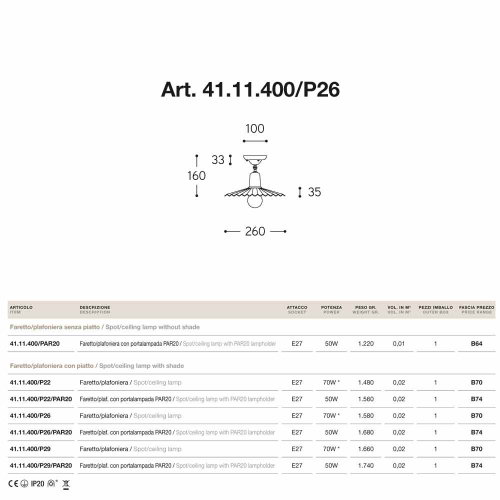 Civetta está disponível em 3 tamanhos diferentes: placa de 22 cm, placa de 26 cm, placa de 29 cm.