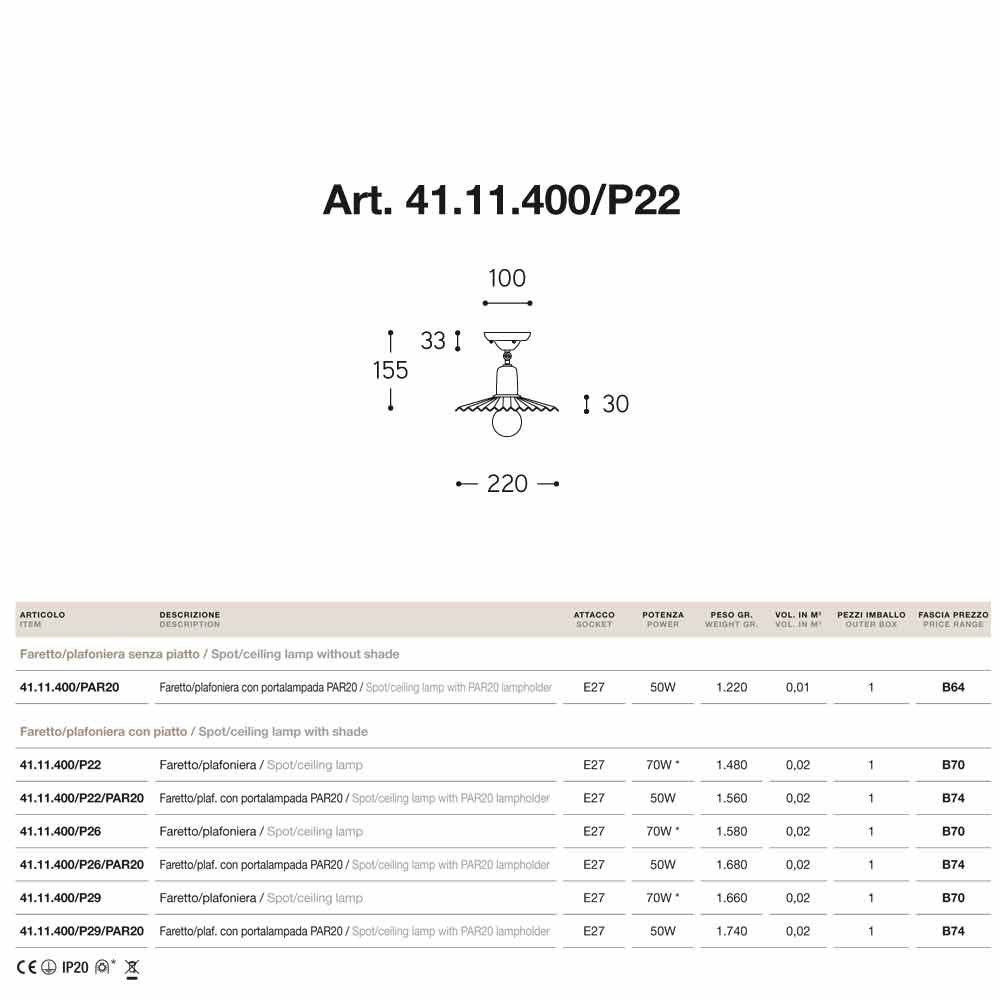 Refletor de teto moderno feito de cobre antigo Civetta de Aldo Bernardi.